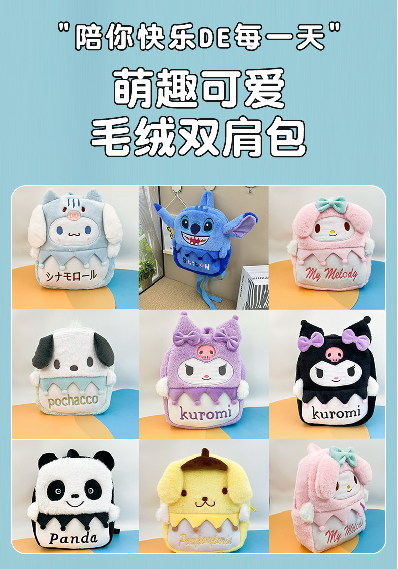 새로운 인터넷 연예인 스티치 플러시 배낭 인형 장난감 어린이 인형 학교 가방 귀여운 만화 배낭