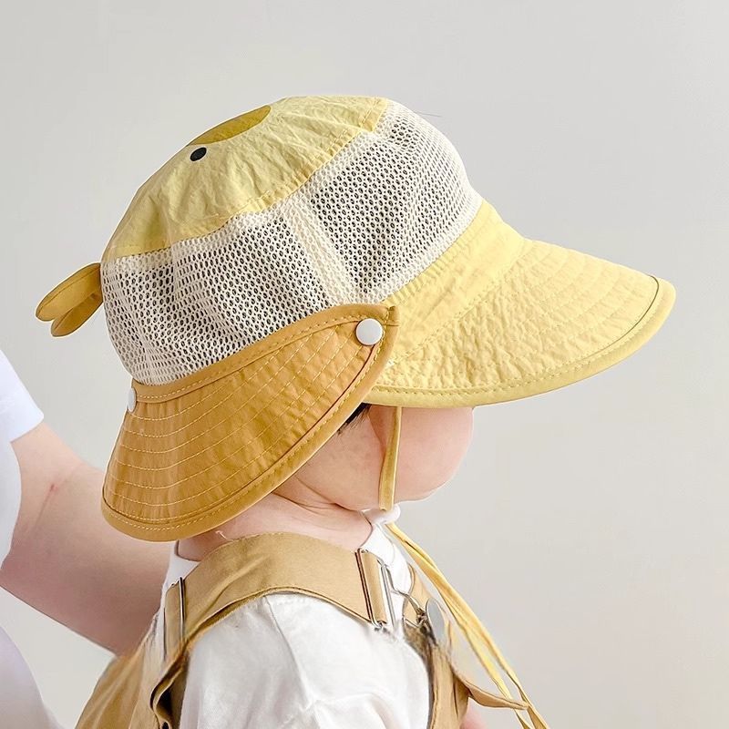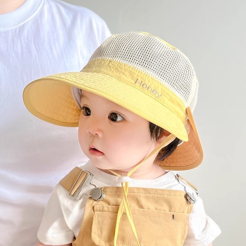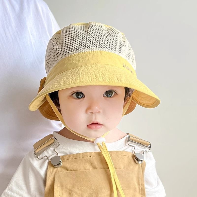 아기 모자 여름 태양 모자 어부 모자 소년과 소녀 아기 메쉬 대형 챙 분리형 목도리 어린이 통기성 및 속건성