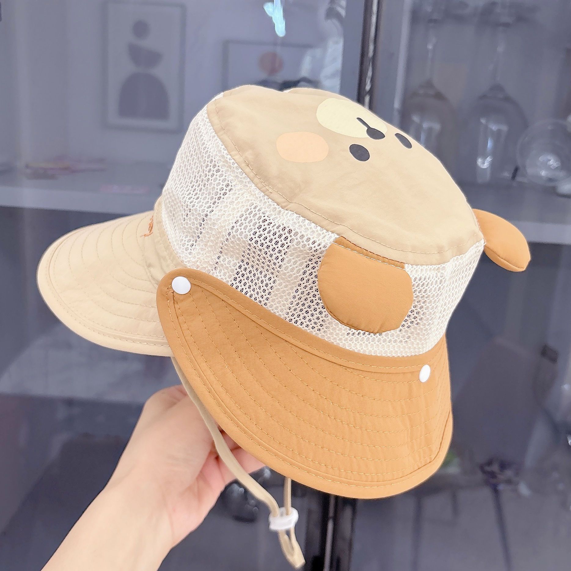 아기 모자 여름 태양 모자 어부 모자 소년과 소녀 아기 메쉬 대형 챙 분리형 목도리 어린이 통기성 및 속건성스토어 가기