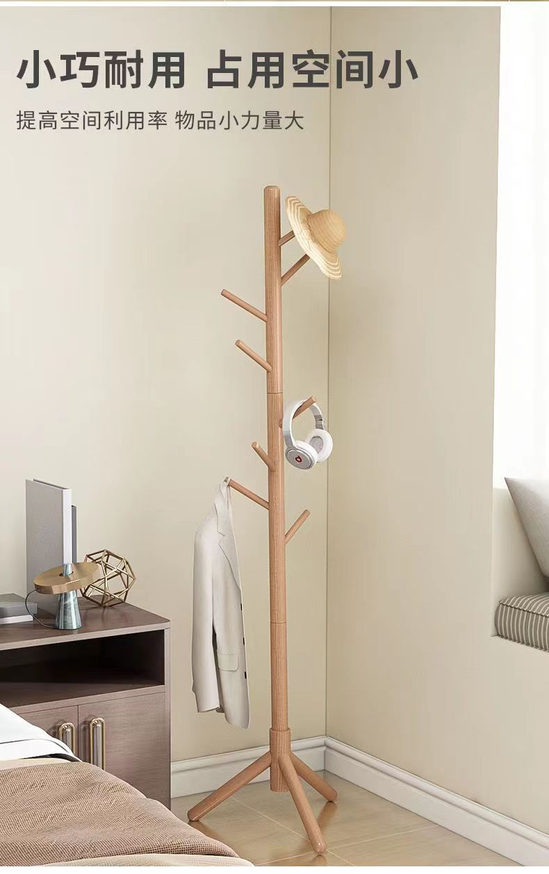 단단한 나무 옷걸이 바닥 스탠딩 침실 코트 랙 룸 너도밤 나무 옷걸이 거실 수직 간단한 가정용 옷걸이 막대