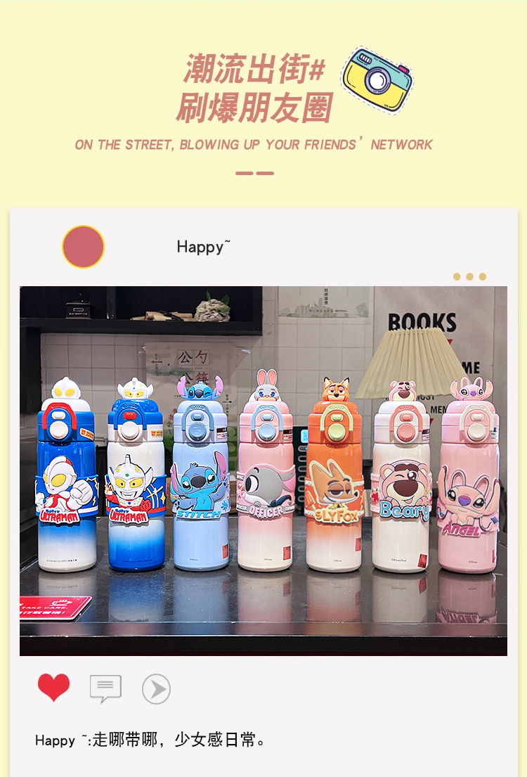 니크 어린이용 여아용 이중 음료 보온병 컵 316 스테인레스 스틸 휴대용 밀짚 컵 초등학생 학교 낙하 방지 주전자스토어 가기