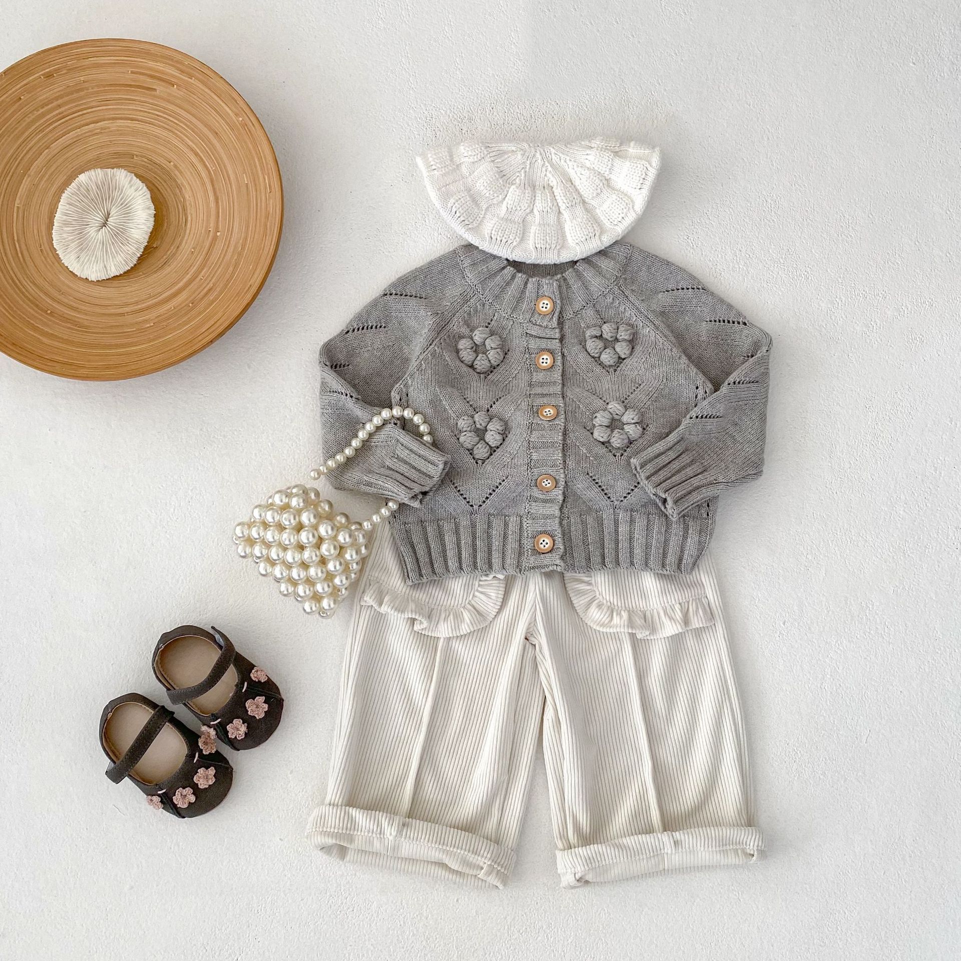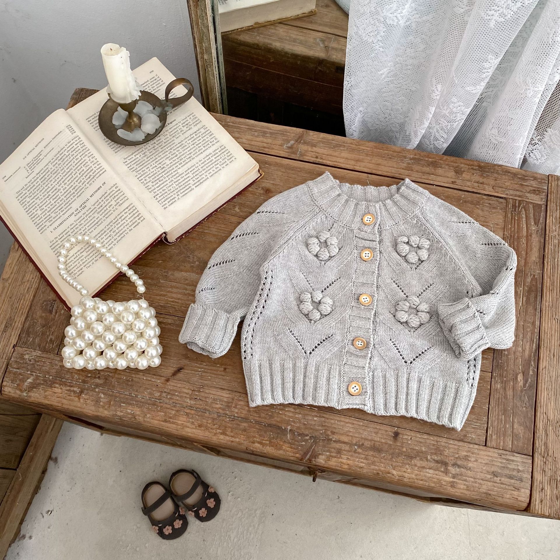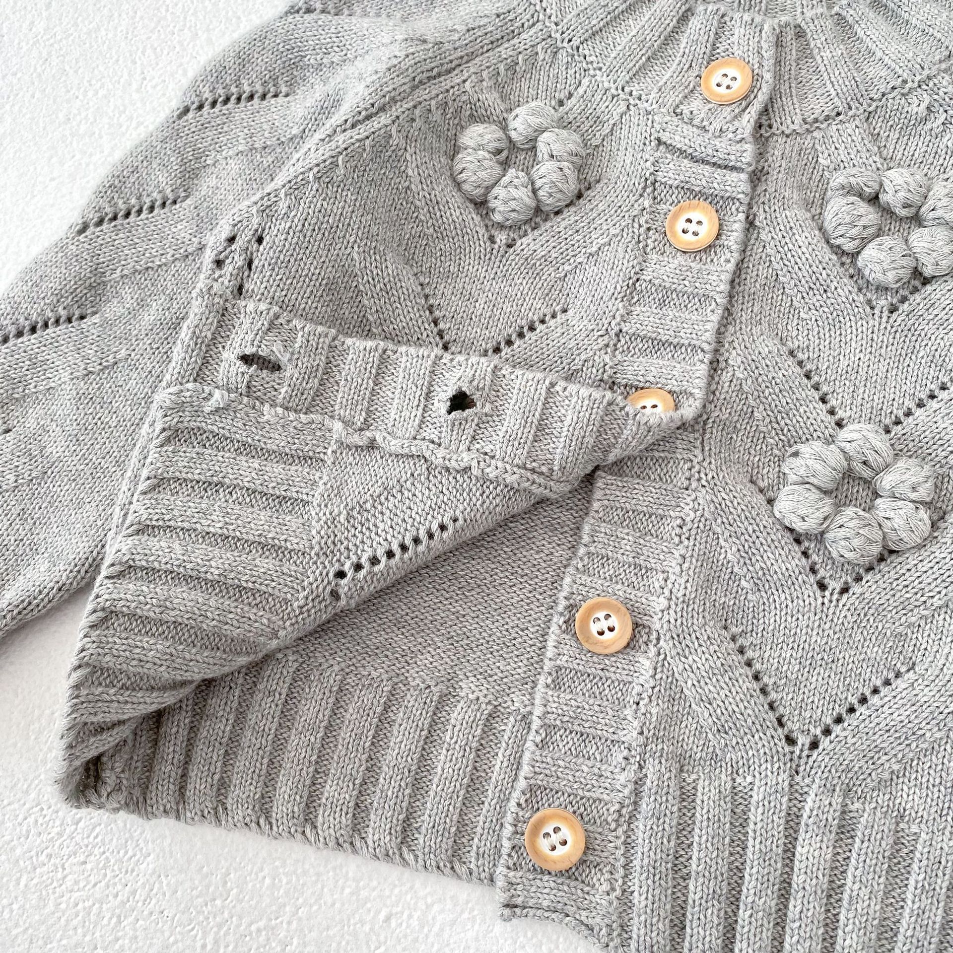 INS 2025 새로운 가을 의류 아기 소녀 속이 빈 손으로 뜨개질 된 볼 니트 스웨터 재킷 다목적 카디건