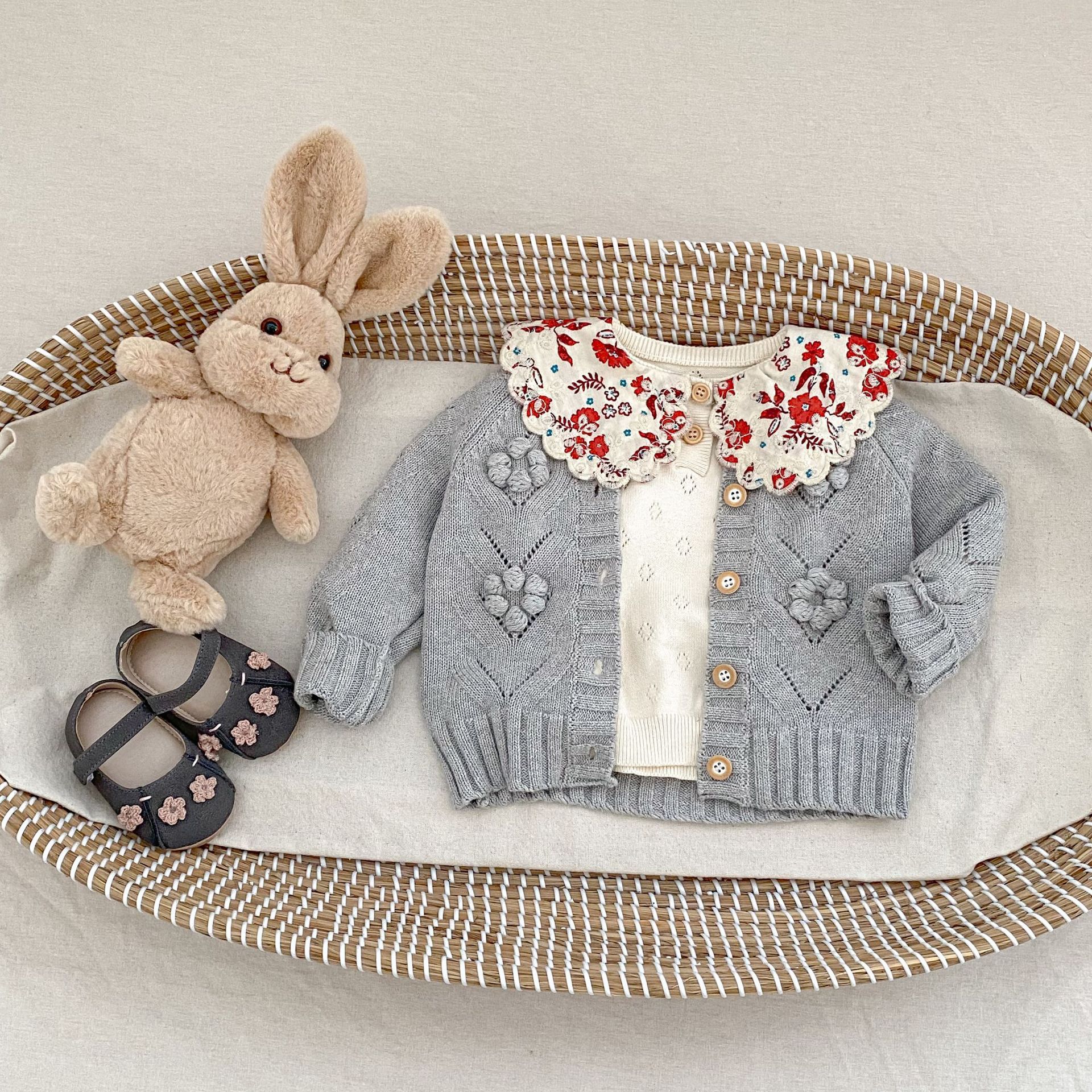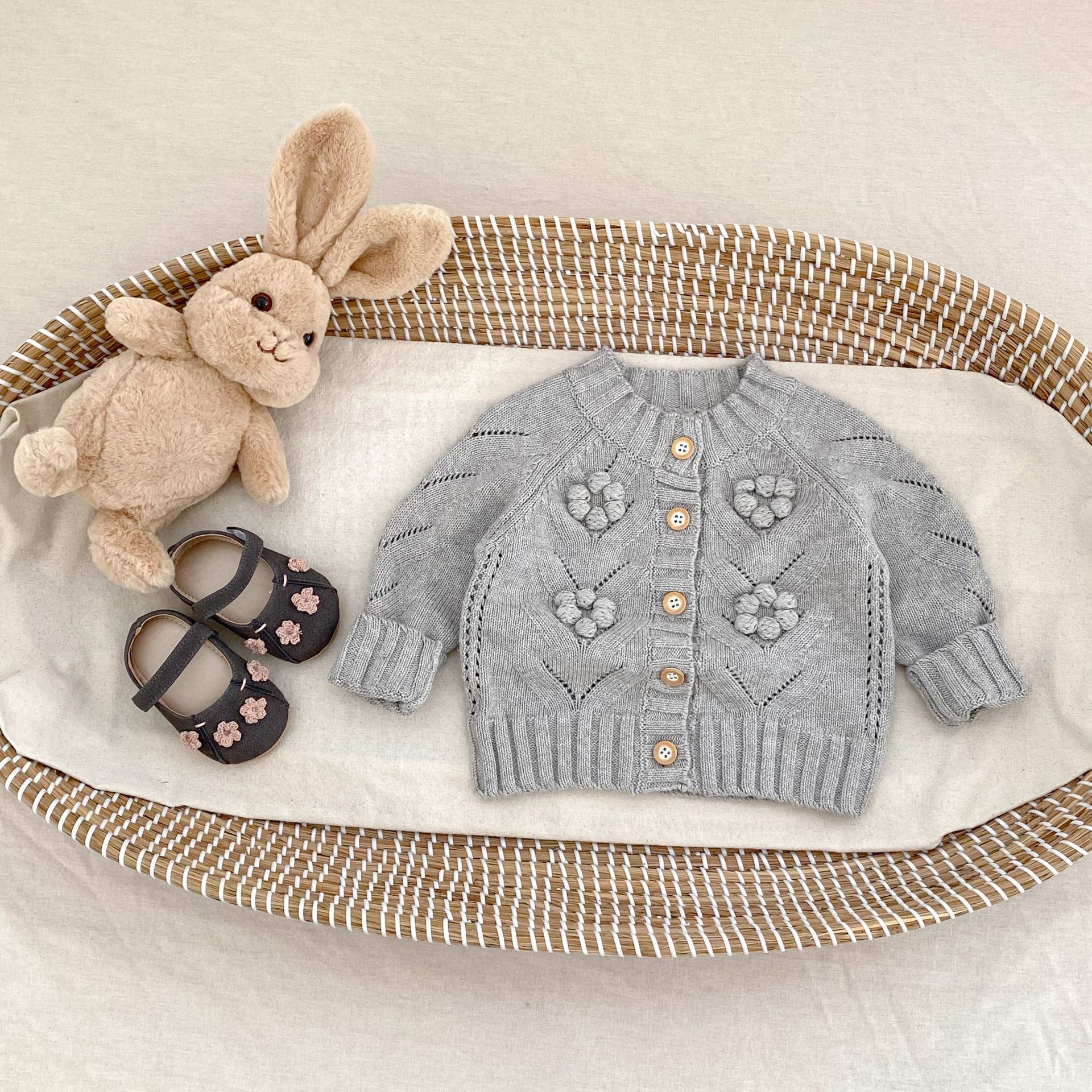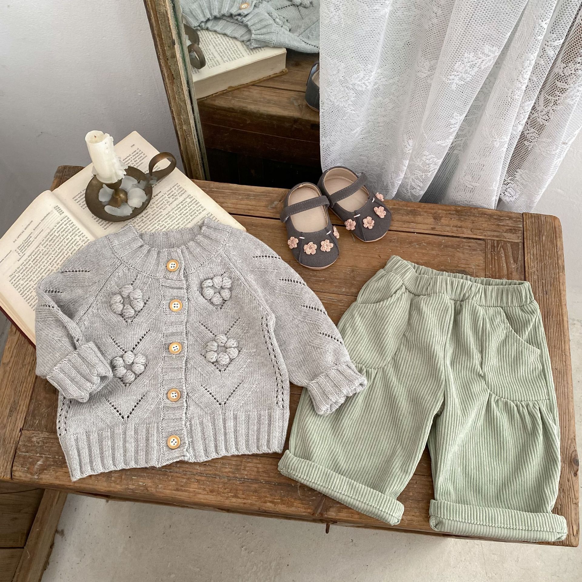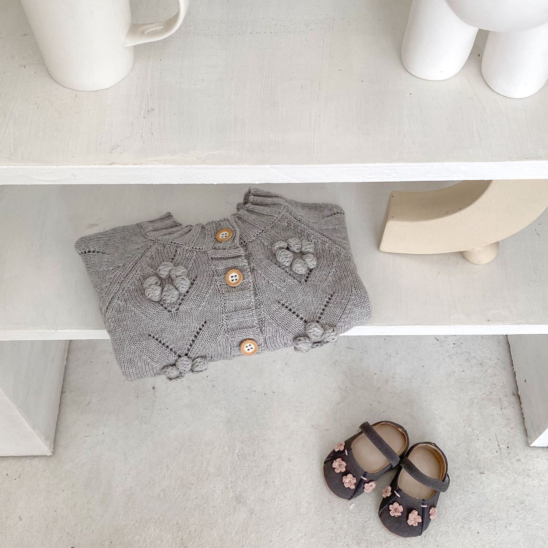 INS 2025 새로운 가을 의류 아기 소녀 속이 빈 손으로 뜨개질 된 볼 니트 스웨터 재킷 다목적 카디건
