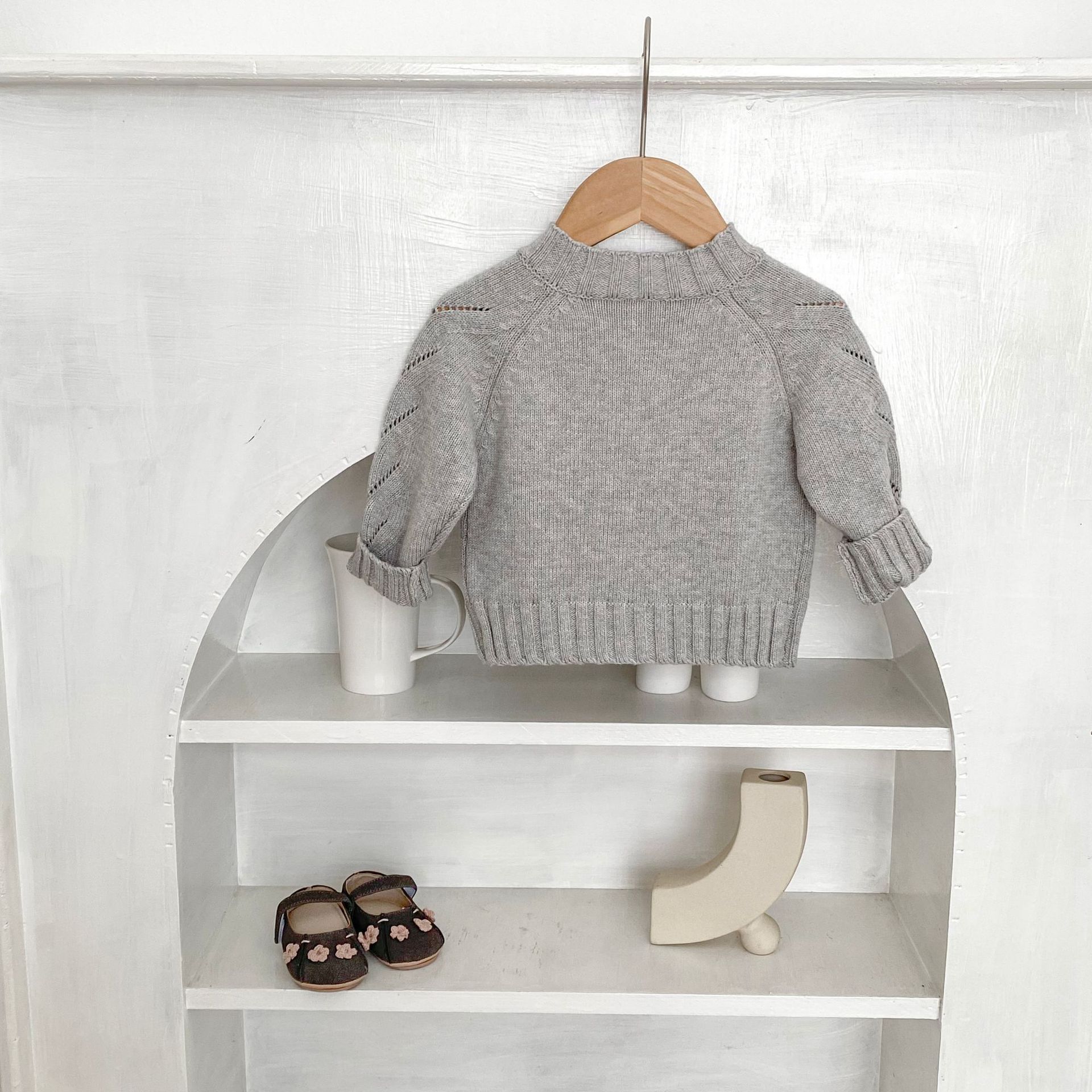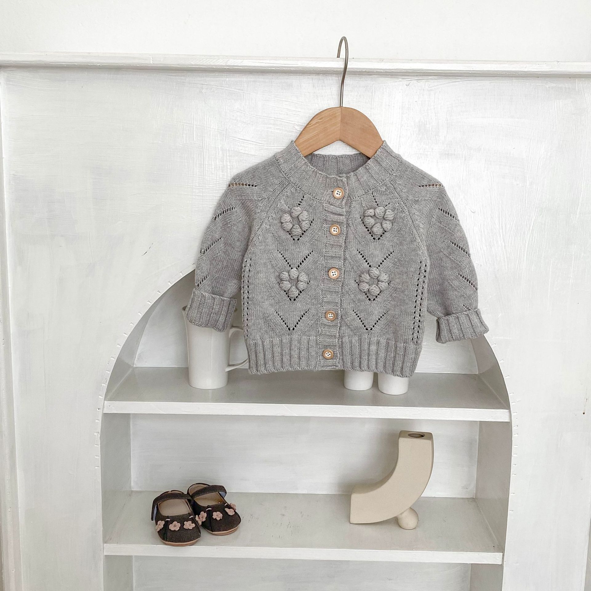 INS 2025 새로운 가을 의류 아기 소녀 속이 빈 손으로 뜨개질 된 볼 니트 스웨터 재킷 다목적 카디건스토어 가기