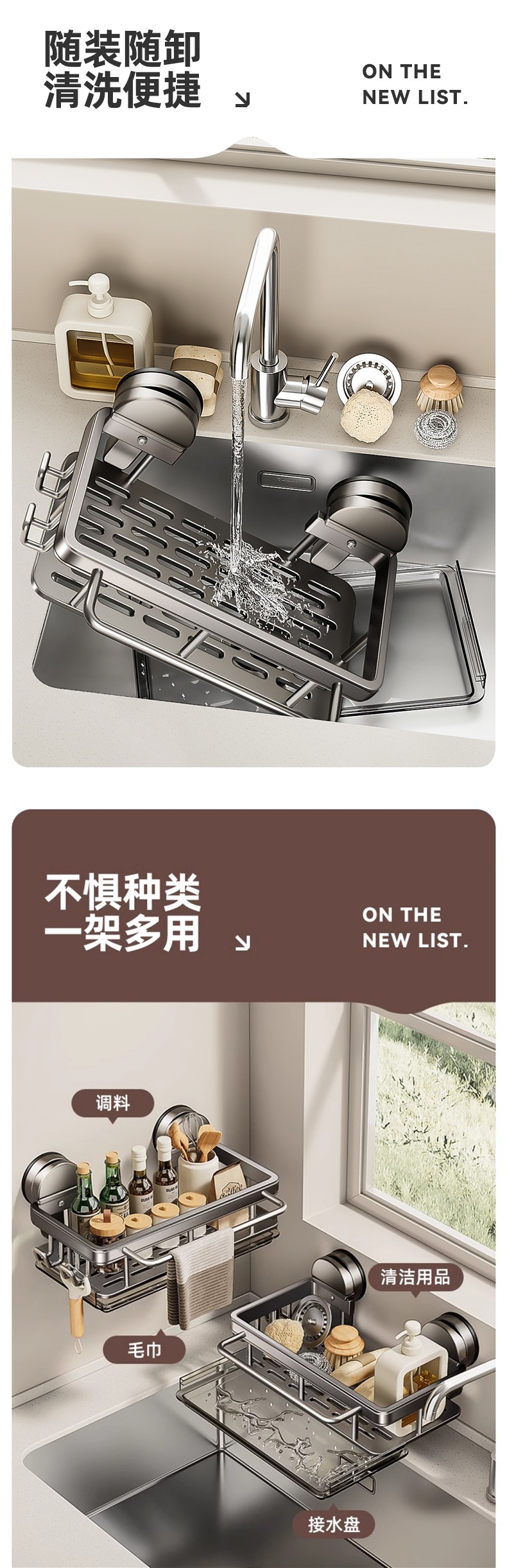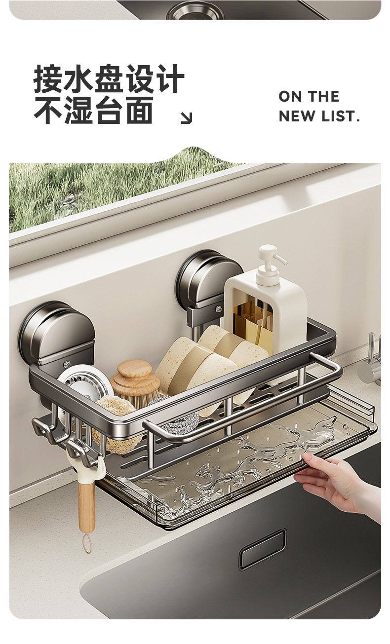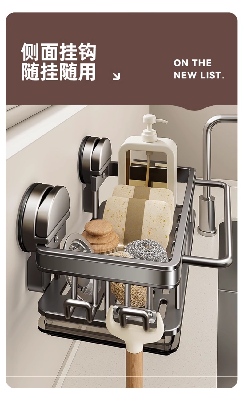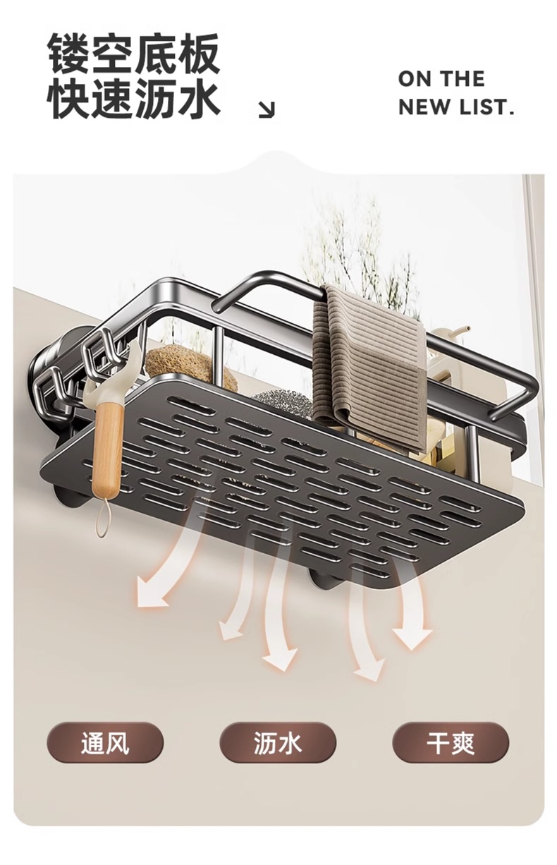 흡입 컵 주방 선반 다기능 걸레 보관 배수 랙 펀치없는 벽걸이 수도꼭지 배수 바구니