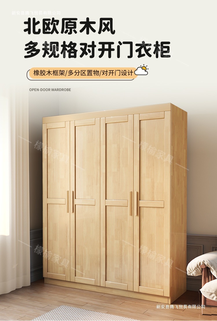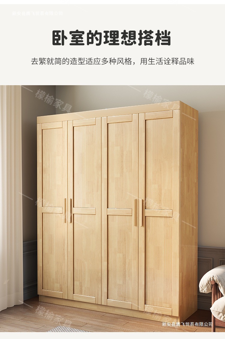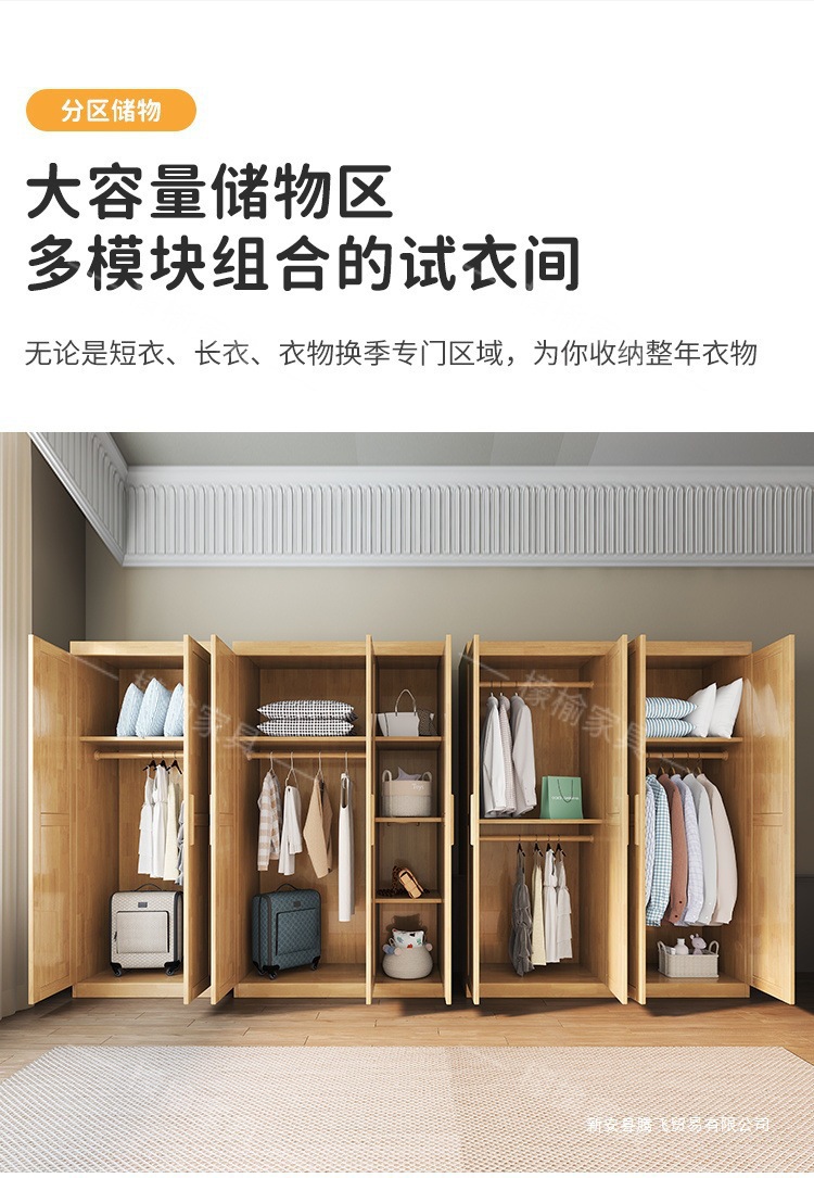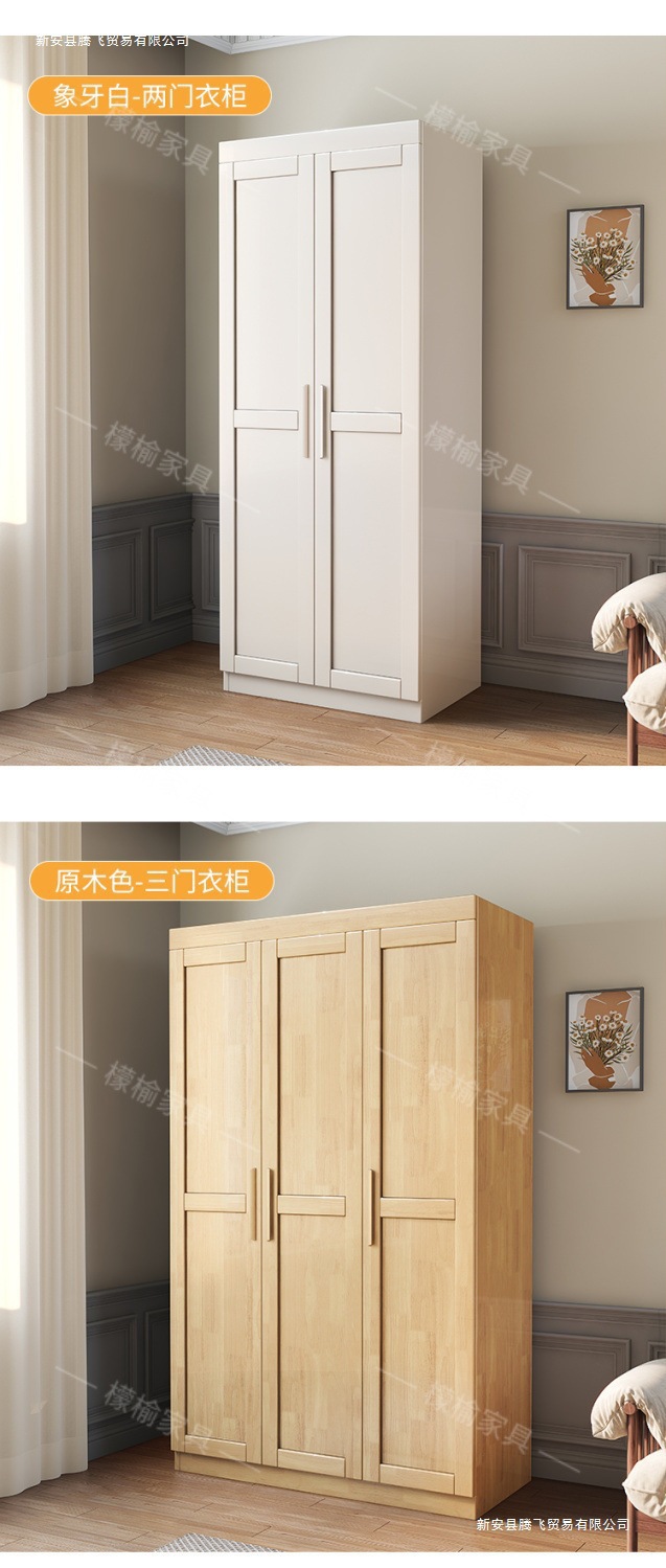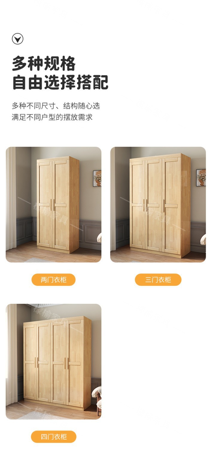 Lemon Elm 전체 단단한 나무 옷장 통나무 양문 현대 간단한 가정용 침실 작은 아파트 스토리지 옷장 대형 옷장스토어 가기
