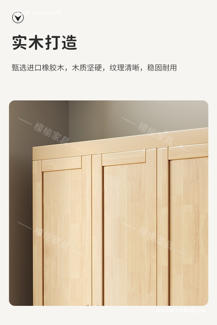 Lemon Elm 전체 단단한 나무 옷장 통나무 양문 현대 간단한 가정용 침실 작은 아파트 스토리지 옷장 대형 옷장