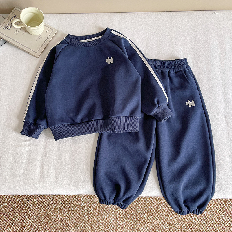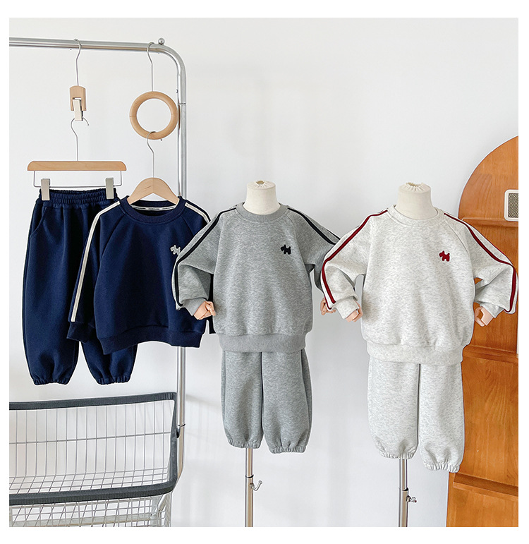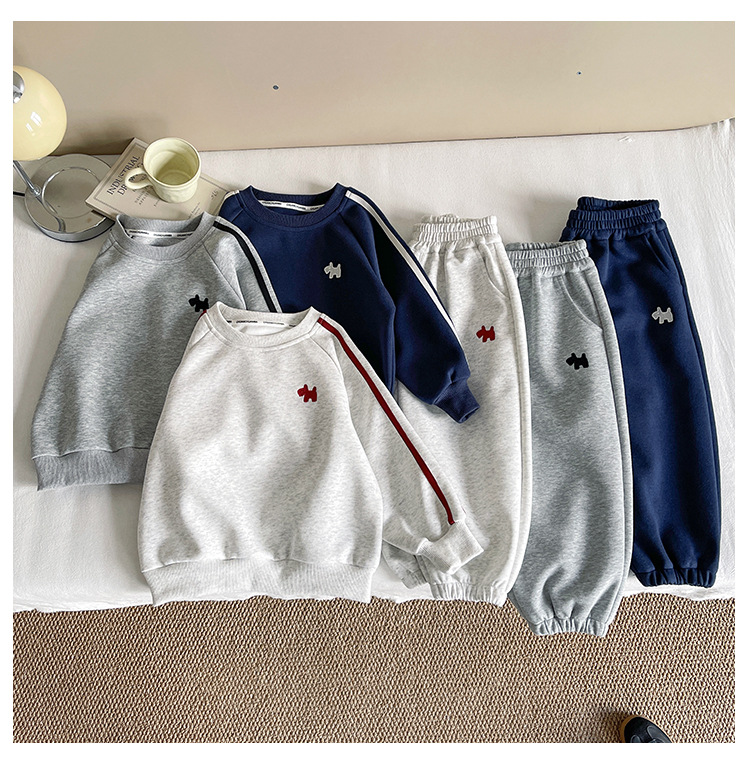 바람의 계곡 2025 새로운 가을 어린이 한국 스타일 강아지 수 놓은 스포츠 정장 소년 느슨하고 잘 생긴 투피스 세트스토어 가기