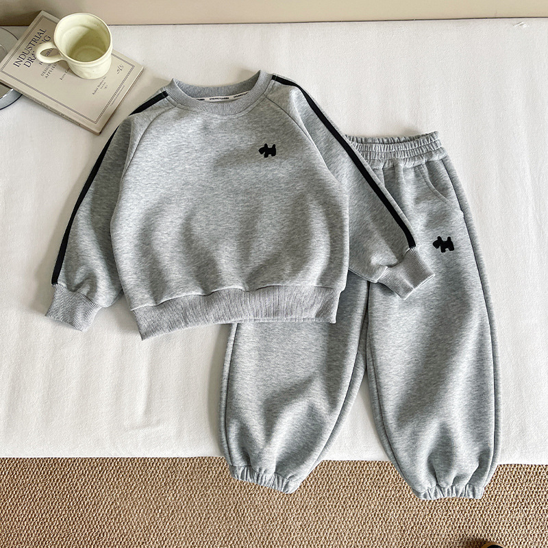 바람의 계곡 2025 새로운 가을 어린이 한국 스타일 강아지 수 놓은 스포츠 정장 소년 느슨하고 잘 생긴 투피스 세트