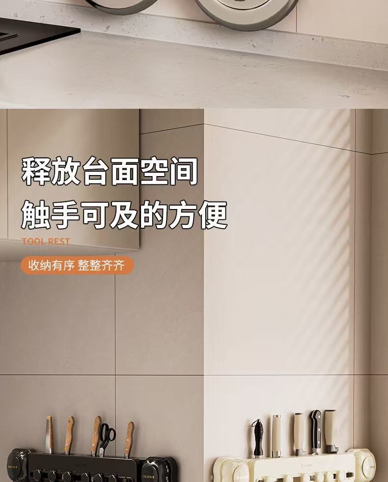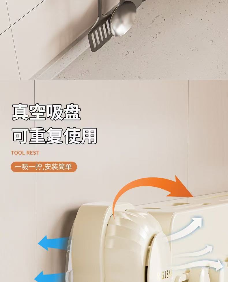 회전식 흡입컵 벽걸이형 주방칼 홀더, 펀치 없는 다기능 주걱 보관 후크, 주방 수납 선반