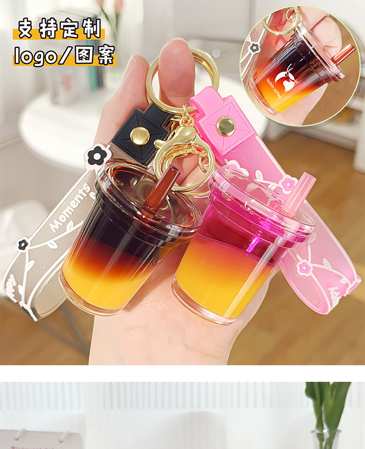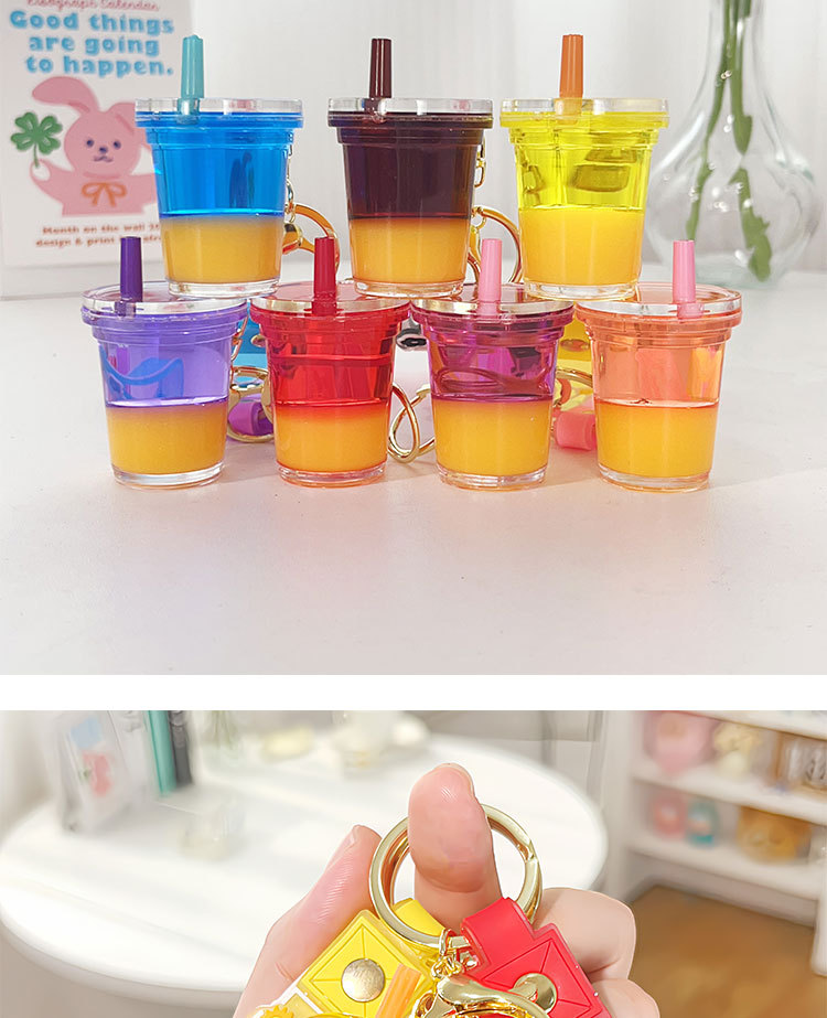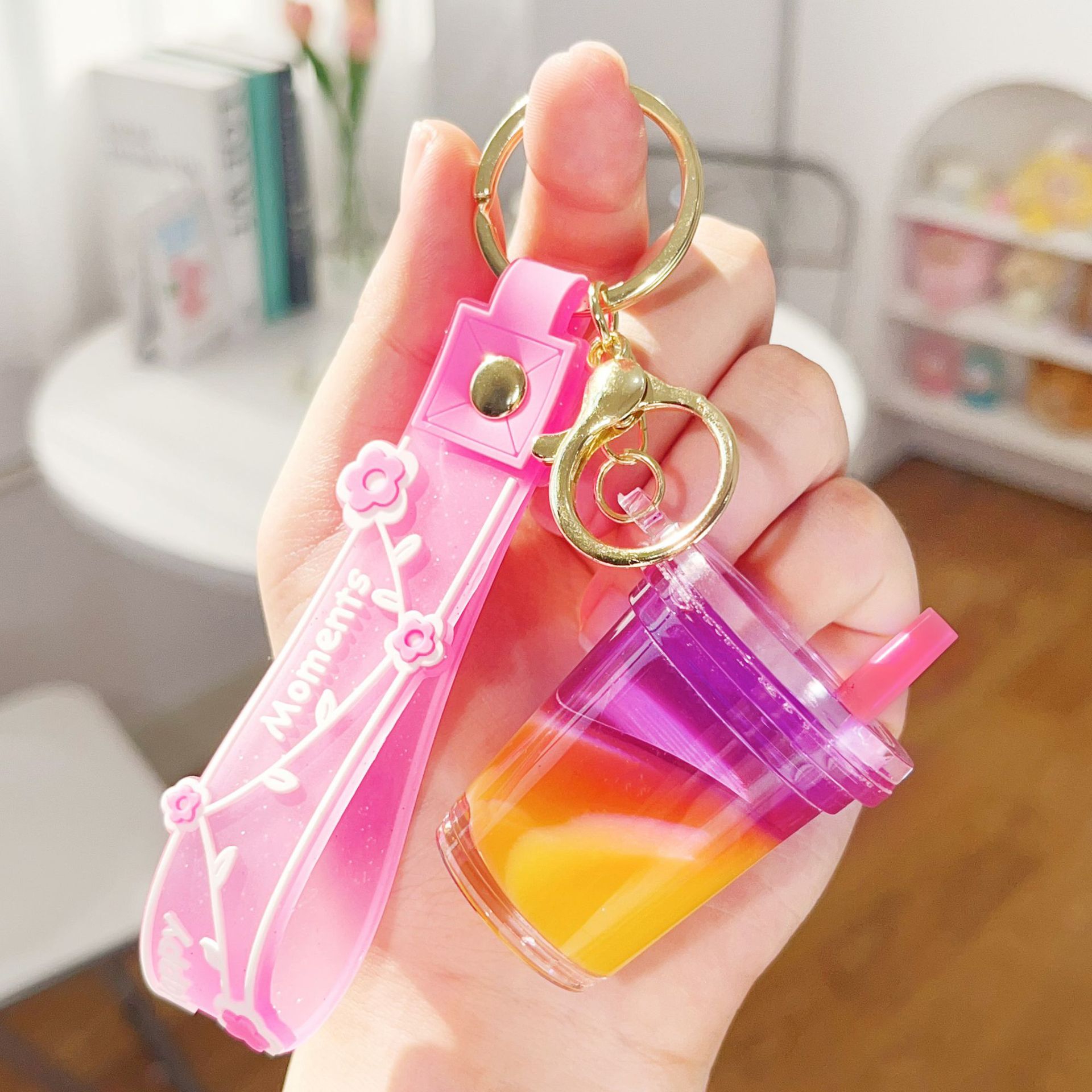 밀크 티 컵 아크릴 크리 에이 티브 키 체인 커피 컵 액체 유사 펜던트 절묘한 귀여운 액세서리 배낭 펜던트스토어 가기