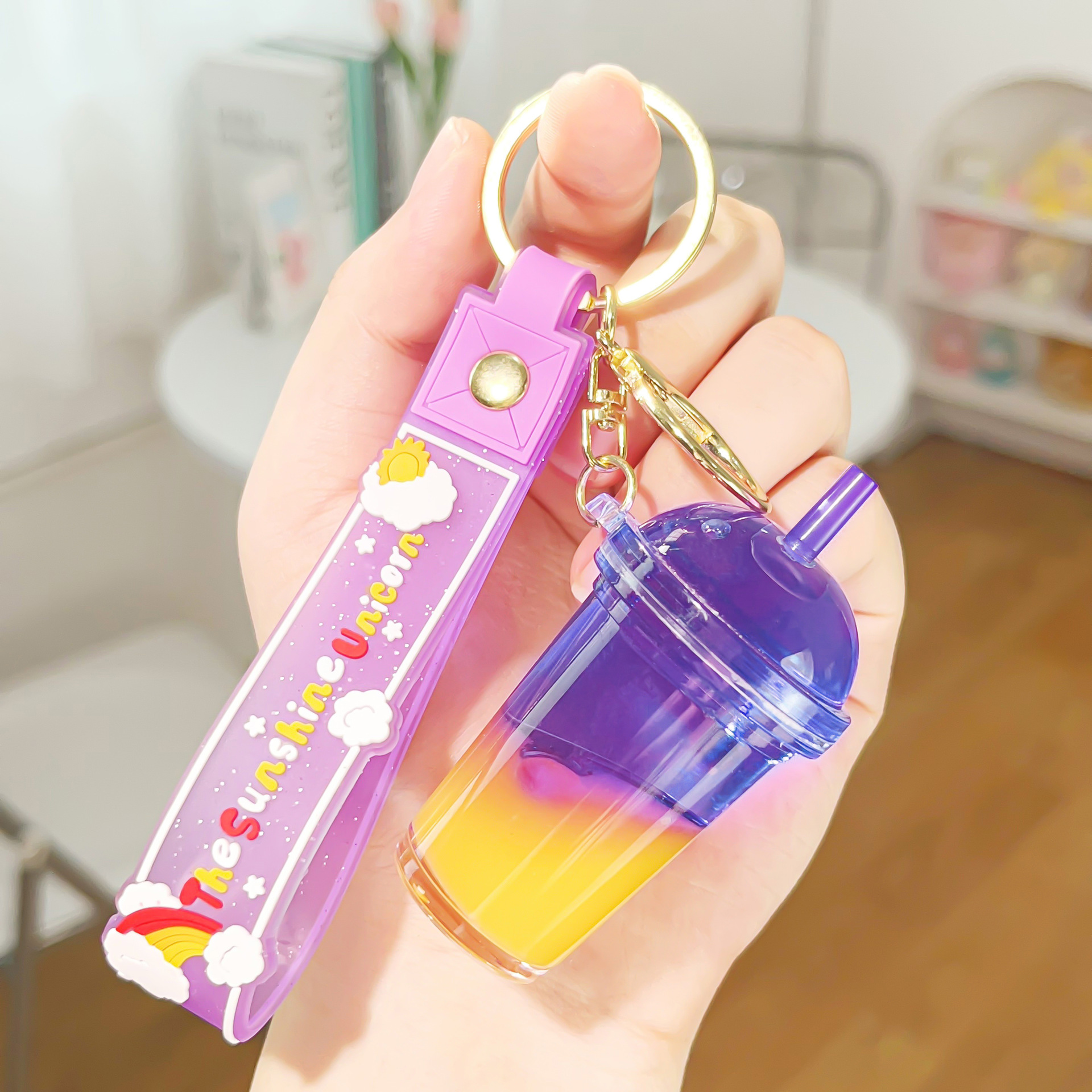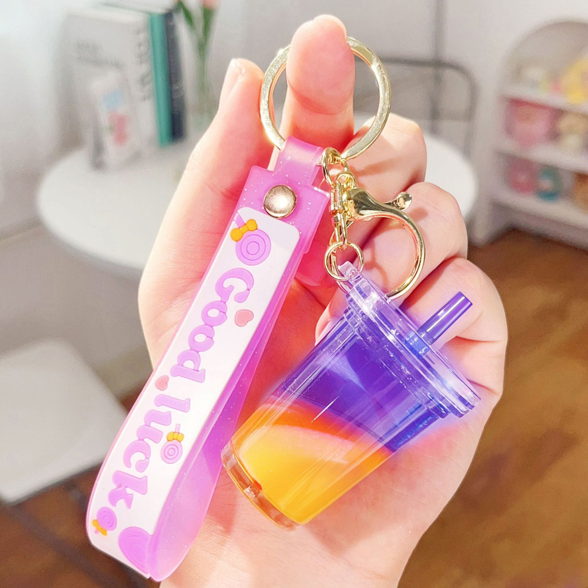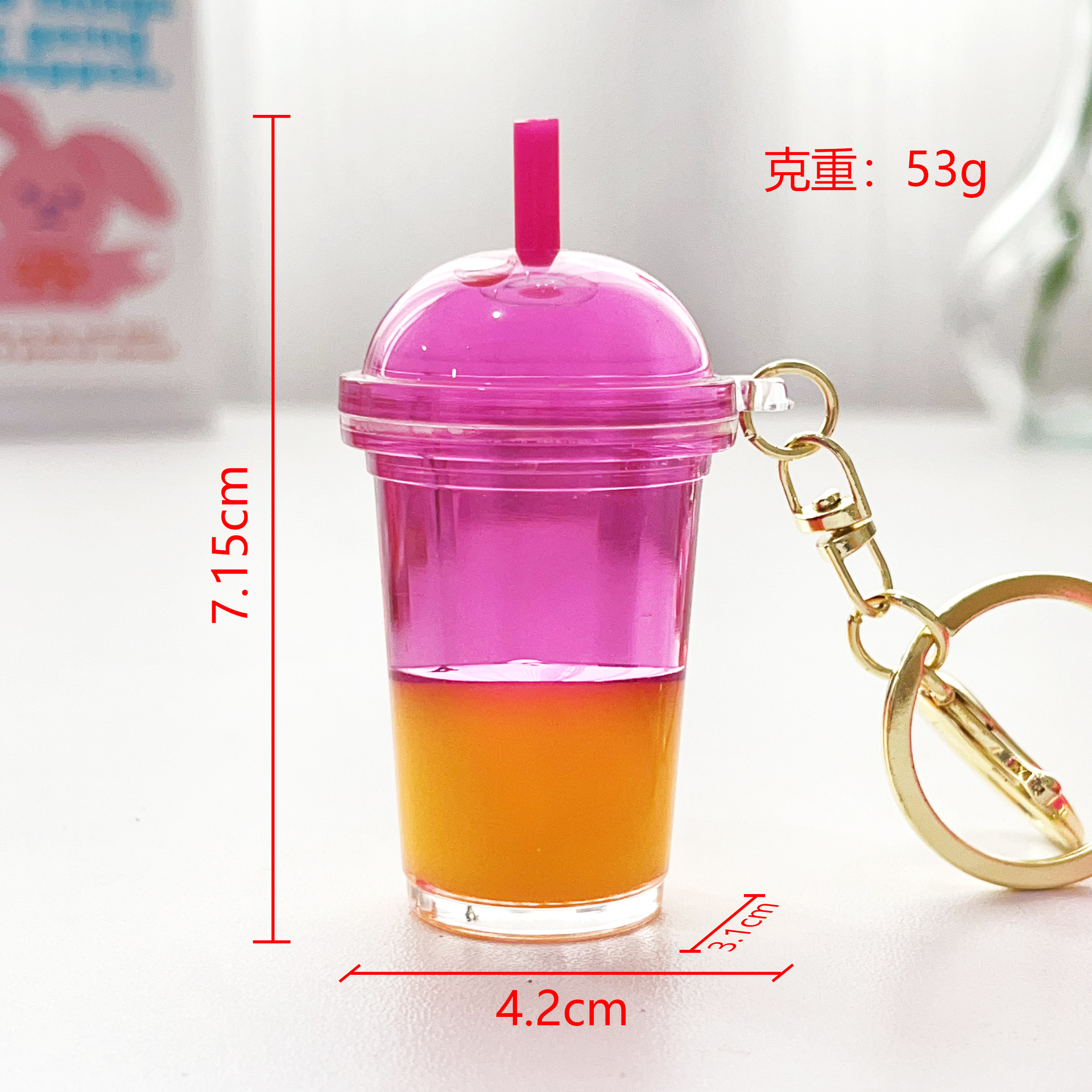 밀크 티 컵 아크릴 크리 에이 티브 키 체인 커피 컵 액체 유사 펜던트 절묘한 귀여운 액세서리 배낭 펜던트