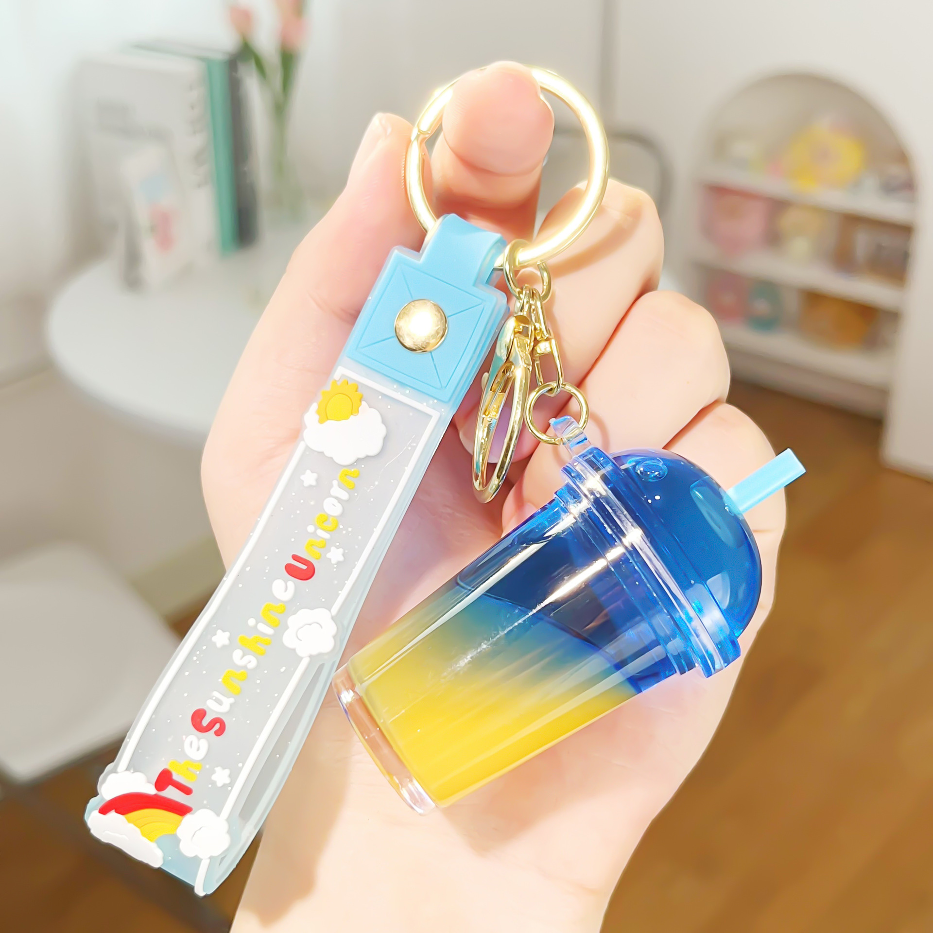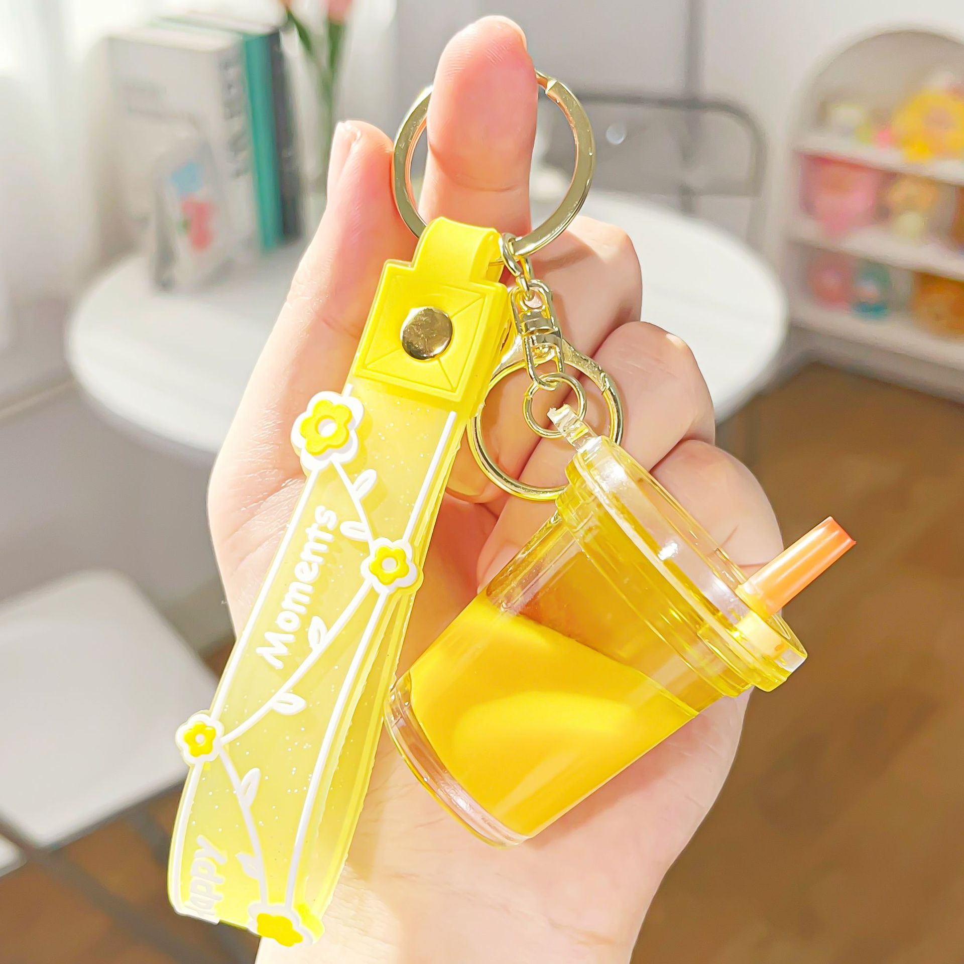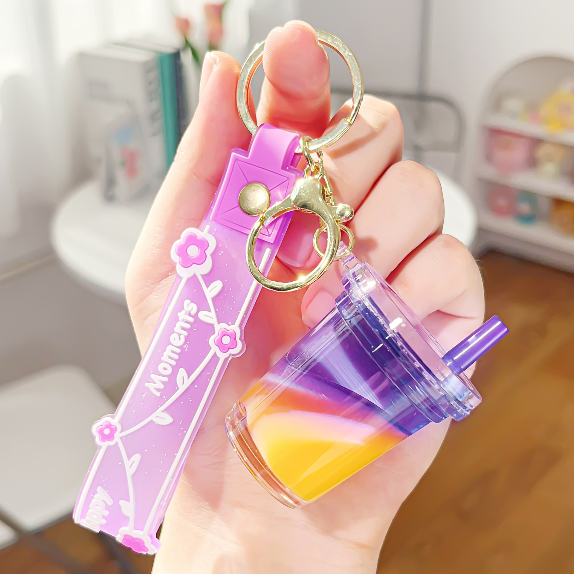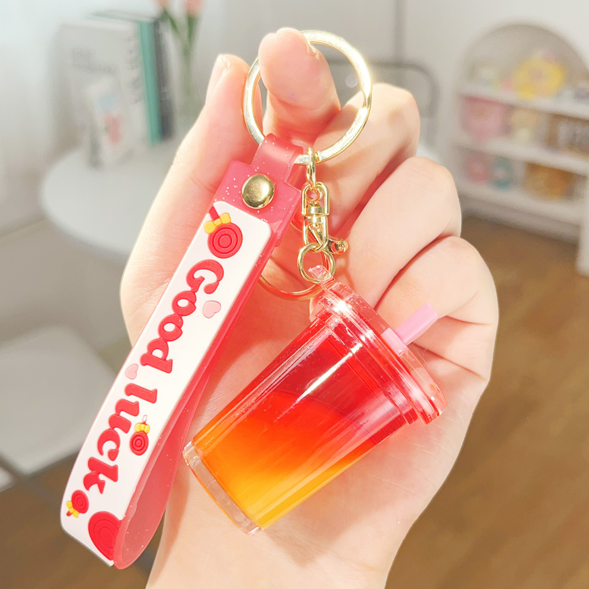 밀크 티 컵 아크릴 크리 에이 티브 키 체인 커피 컵 액체 유사 펜던트 절묘한 귀여운 액세서리 배낭 펜던트