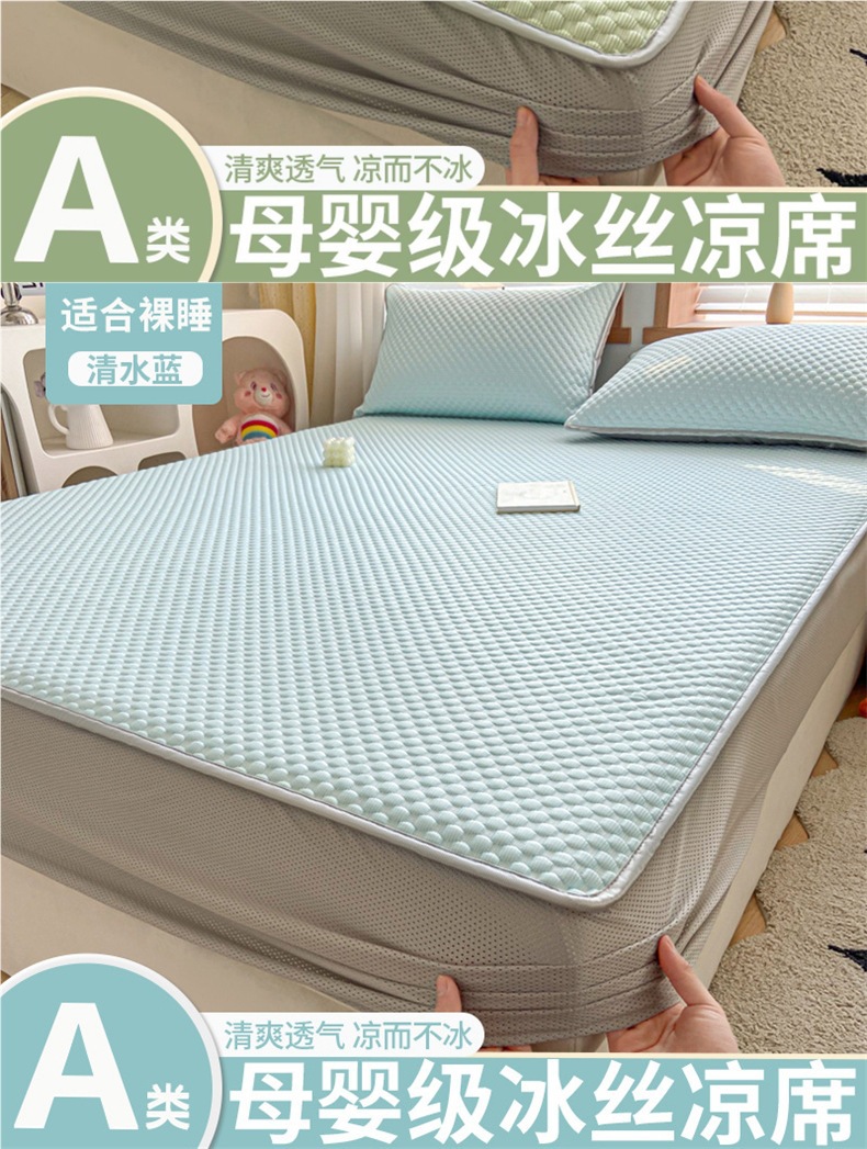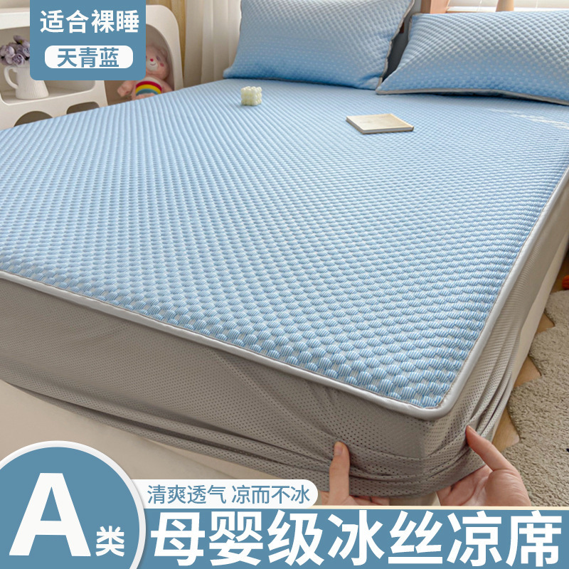 여름 아이스 실크 매트, 매트리스 커버, 아이스빈 침대 커버 3종 세트, 시원한 에어컨 매트, 세탁 가능, 2025 새로운 스타일스토어 가기