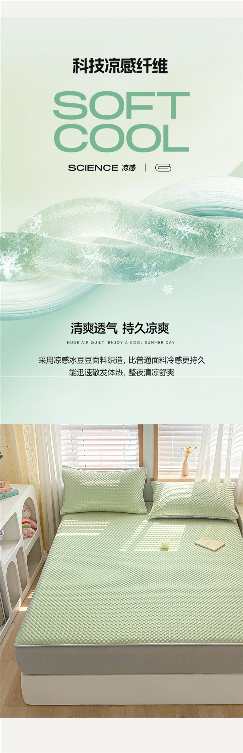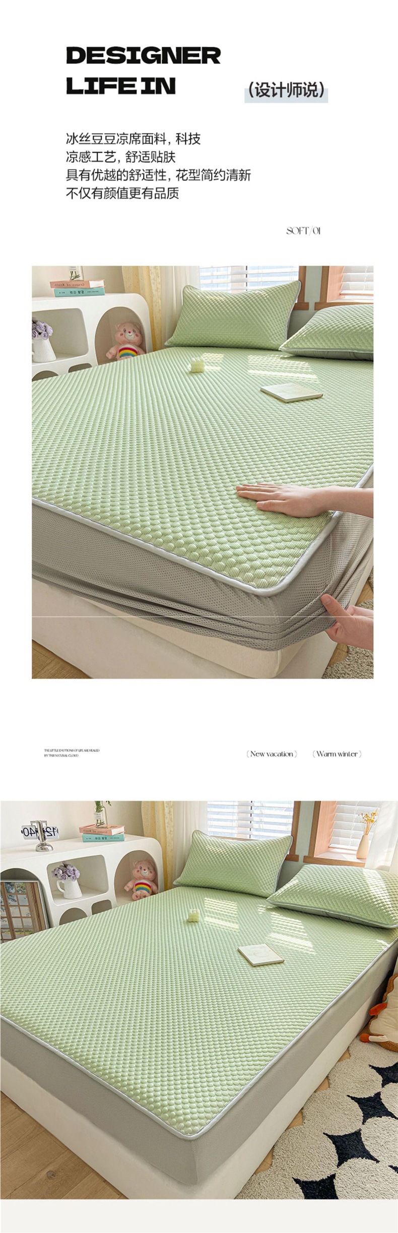 여름 아이스 실크 매트, 매트리스 커버, 아이스빈 침대 커버 3종 세트, 시원한 에어컨 매트, 세탁 가능, 2025 새로운 스타일
