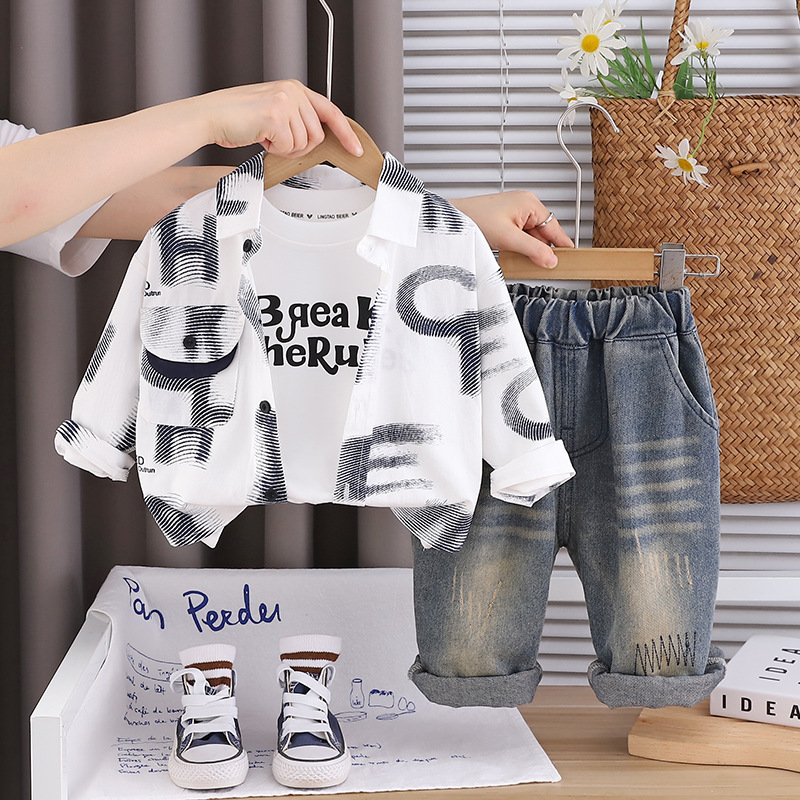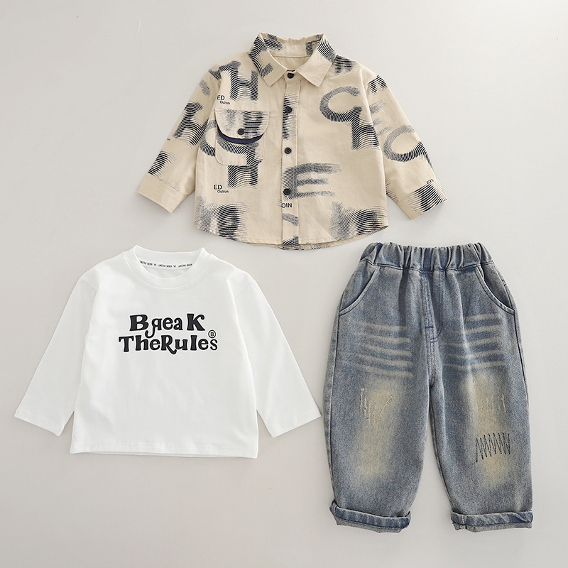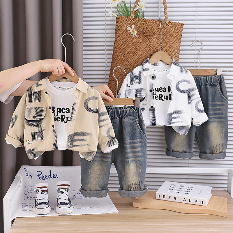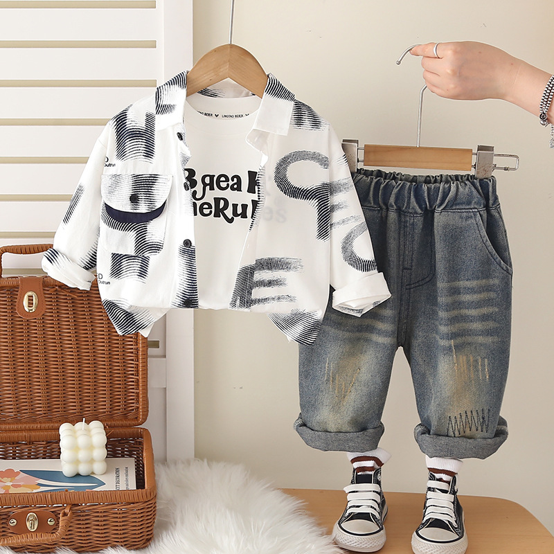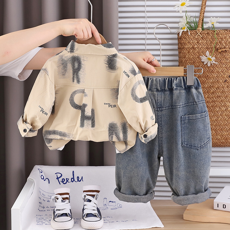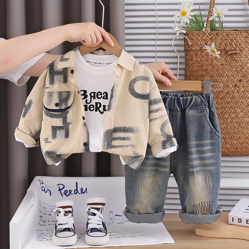 2025 새로운 가을 소년 전체 인쇄 옷깃 재킷 긴 소매 3 피스 세트 공장 도매