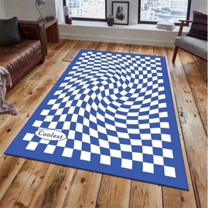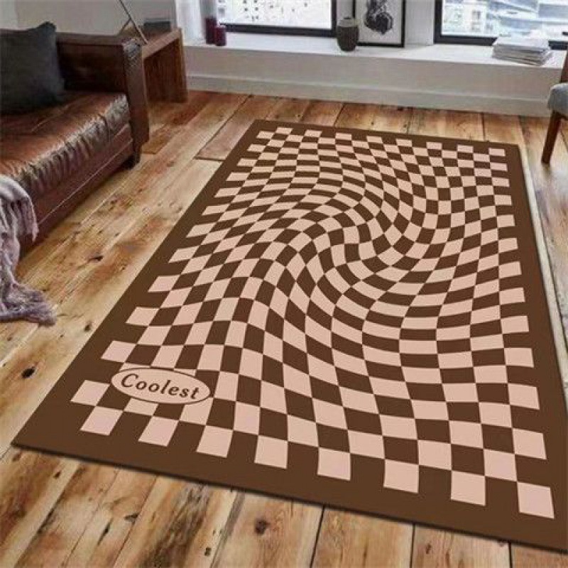 INS 인기 거실 카펫 모로코 바둑판 커피 테이블 담요 여름 ins 스타일 소녀 복고풍 녹색 잔디 매트 침실
