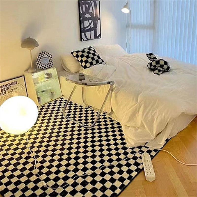 INS 인기 거실 카펫 모로코 바둑판 커피 테이블 담요 여름 ins 스타일 소녀 복고풍 녹색 잔디 매트 침실스토어 가기