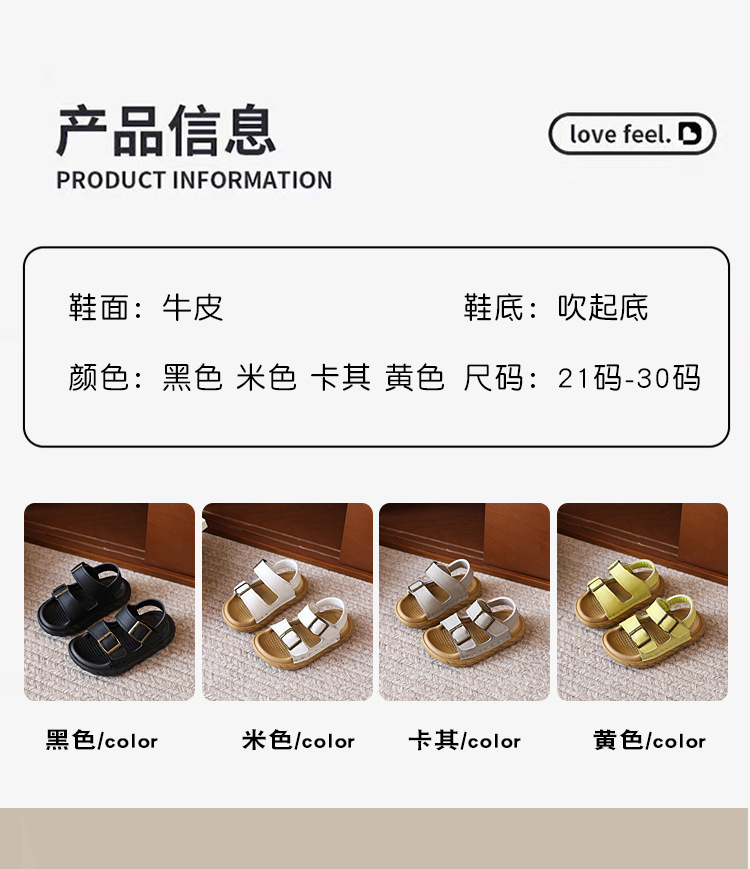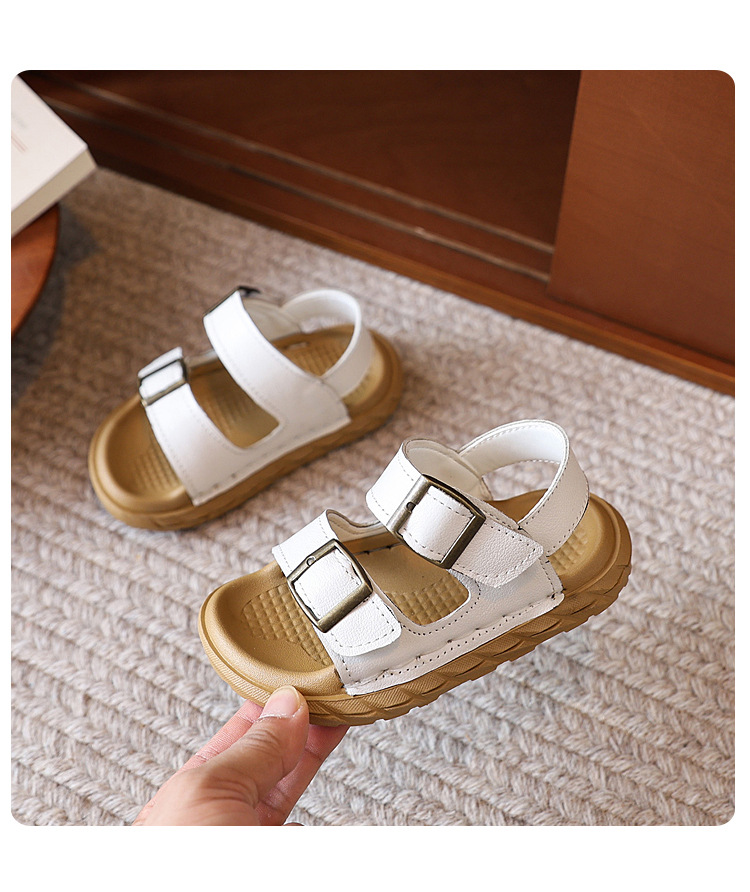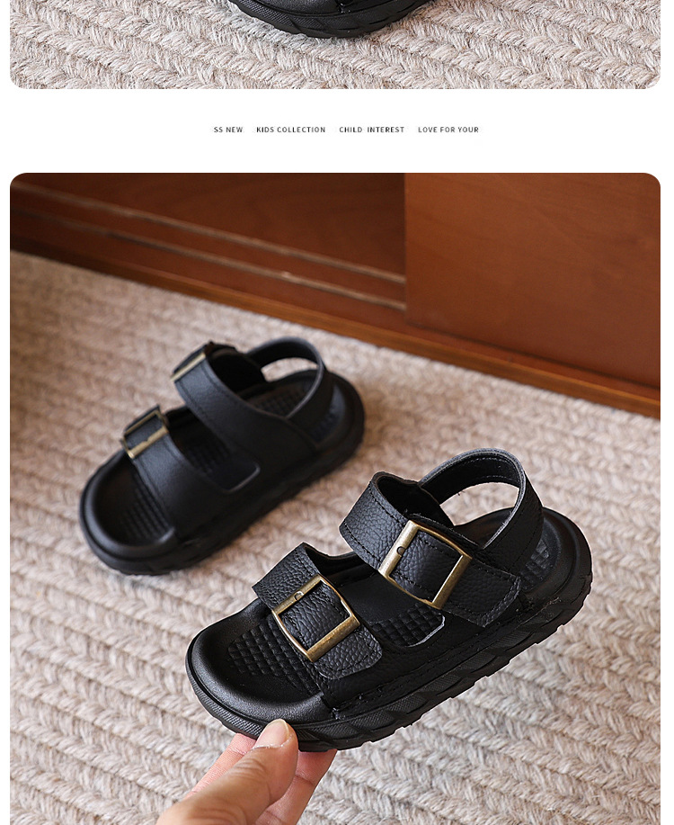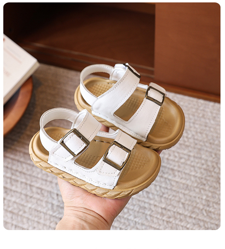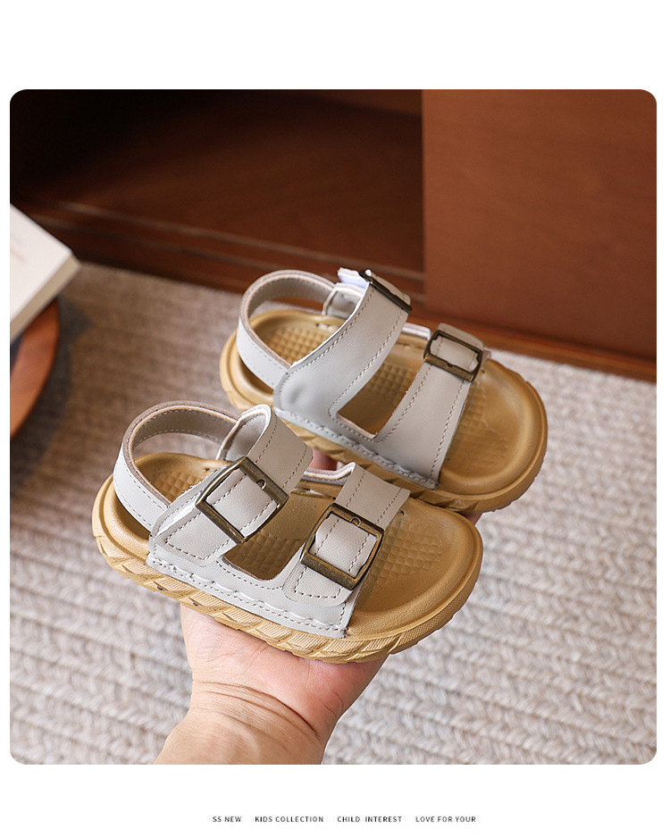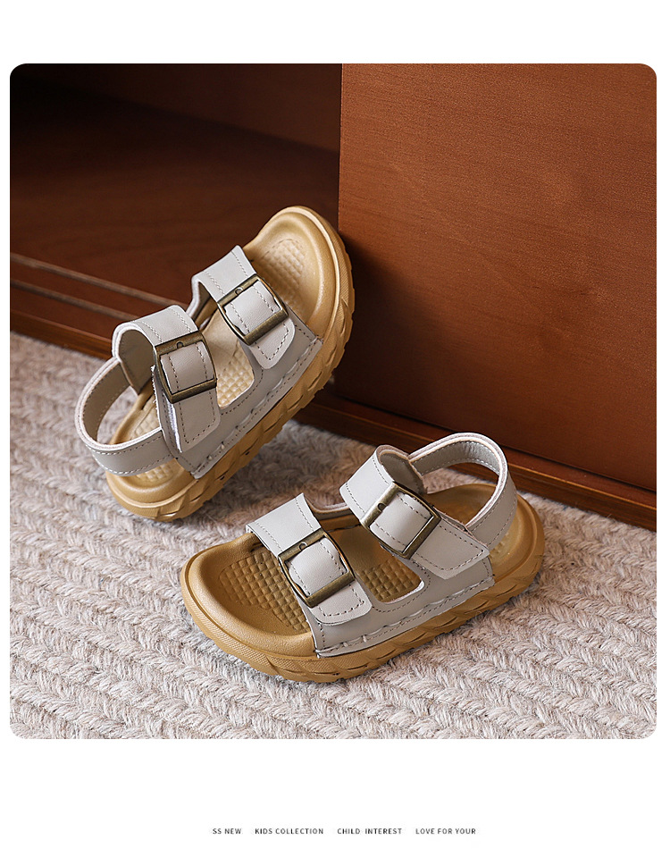 어린이 샌들 여름 새 스타일 소녀 소 가죽 복고풍 Boken 비치 신발 소년 다목적 부드러운 단독 미끄럼 방지 캐주얼 신발