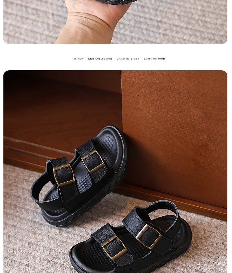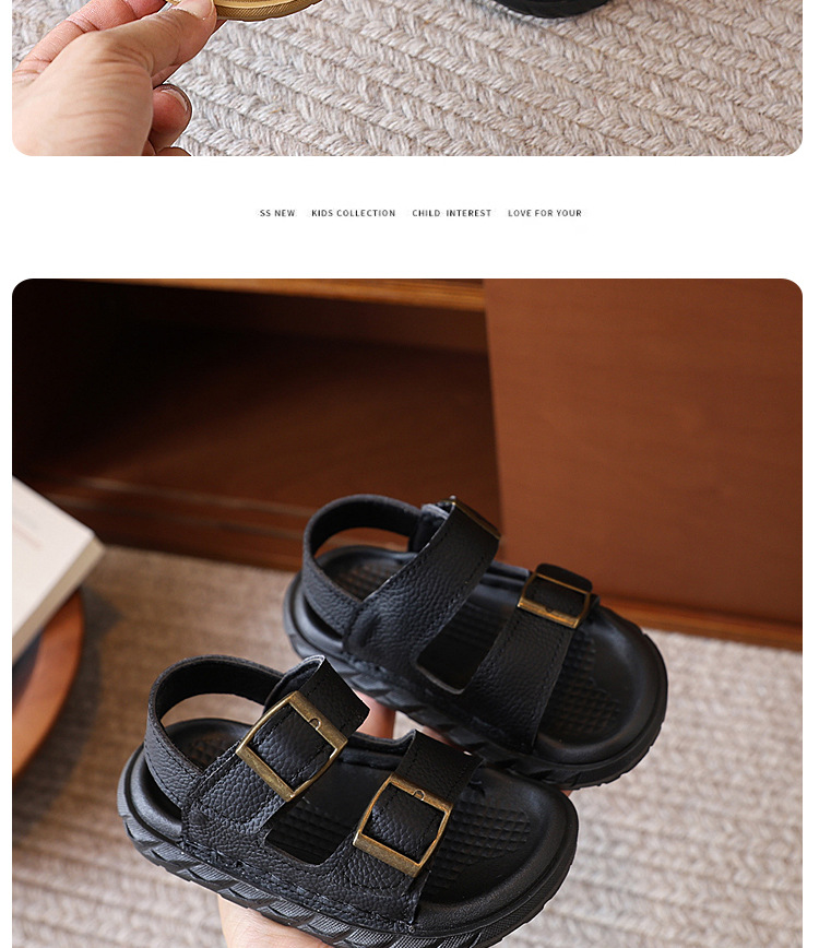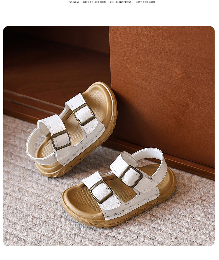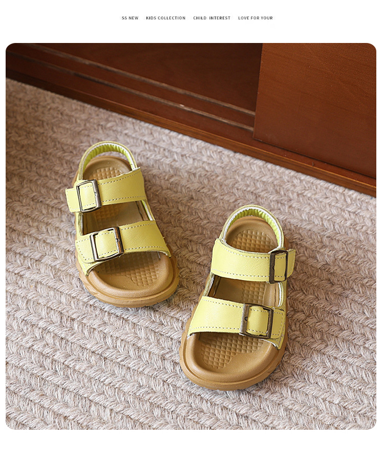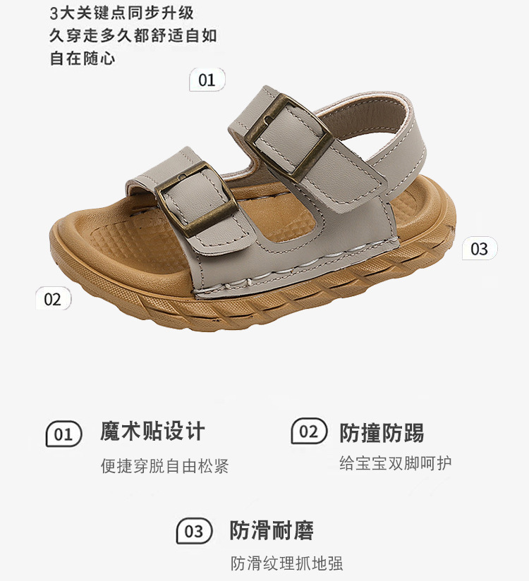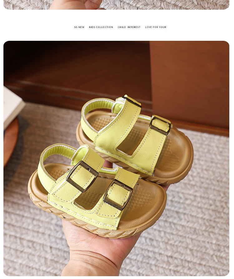 어린이 샌들 여름 새 스타일 소녀 소 가죽 복고풍 Boken 비치 신발 소년 다목적 부드러운 단독 미끄럼 방지 캐주얼 신발스토어 가기