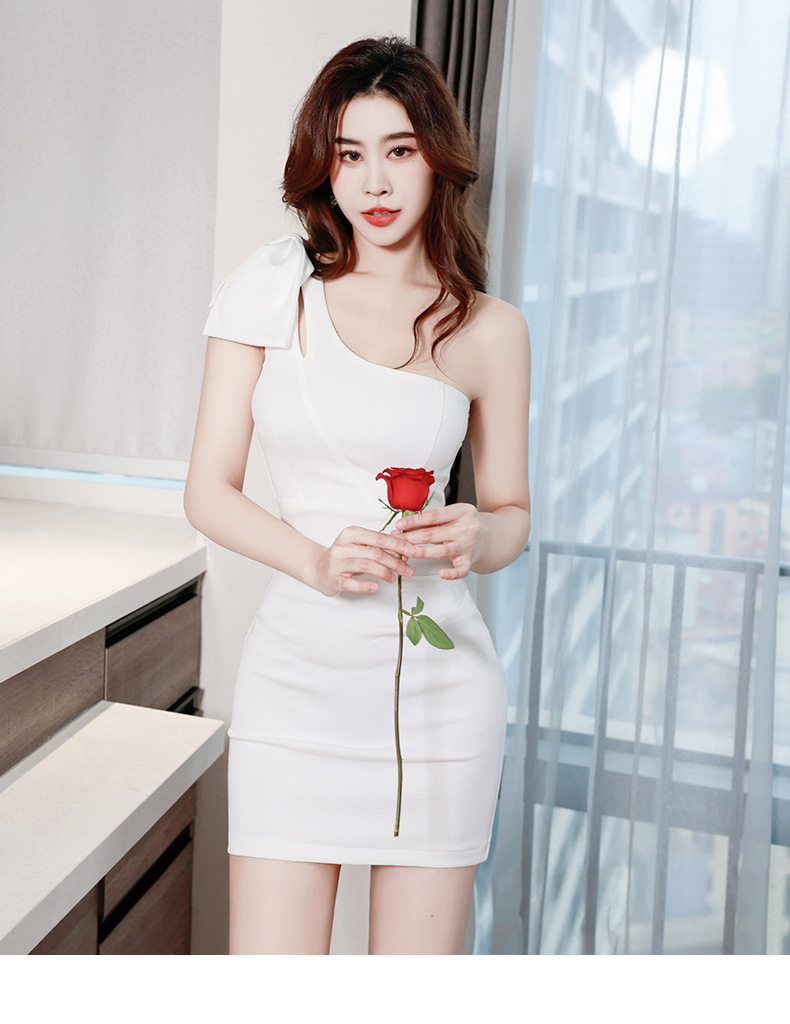 니치한 슬랜트 숄더백 힙 스몰 드레스, 우아한 여성 생일 파티 드레스, 화이트 슬림핏 핫걸 드레스스토어 가기