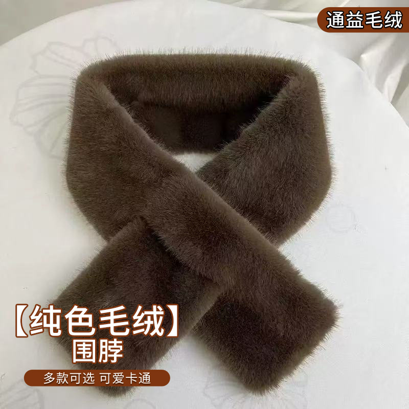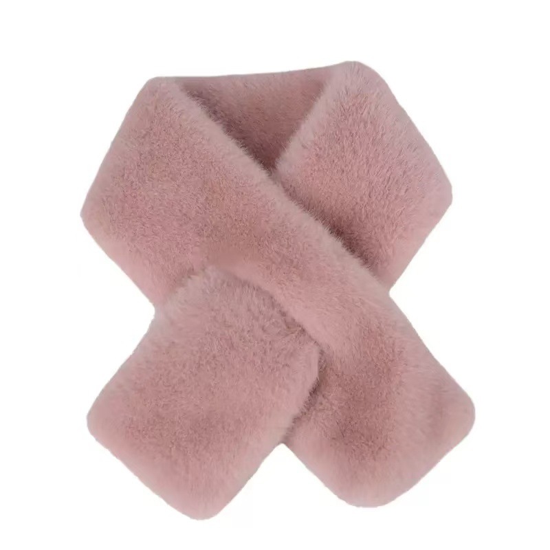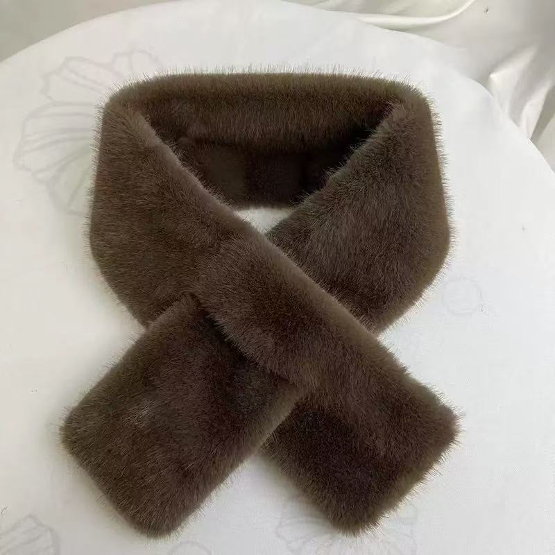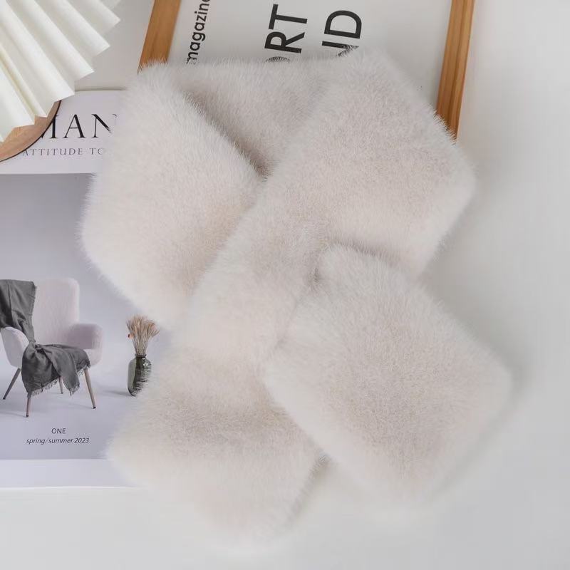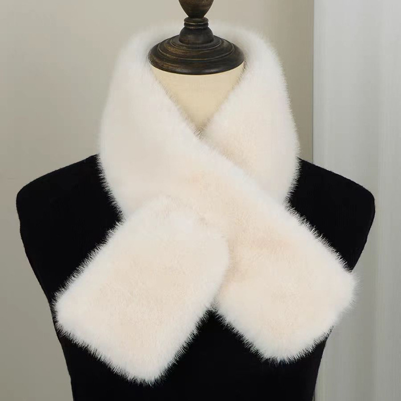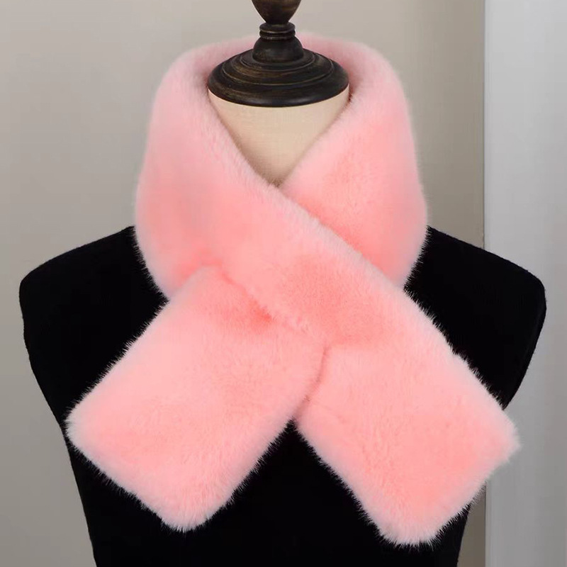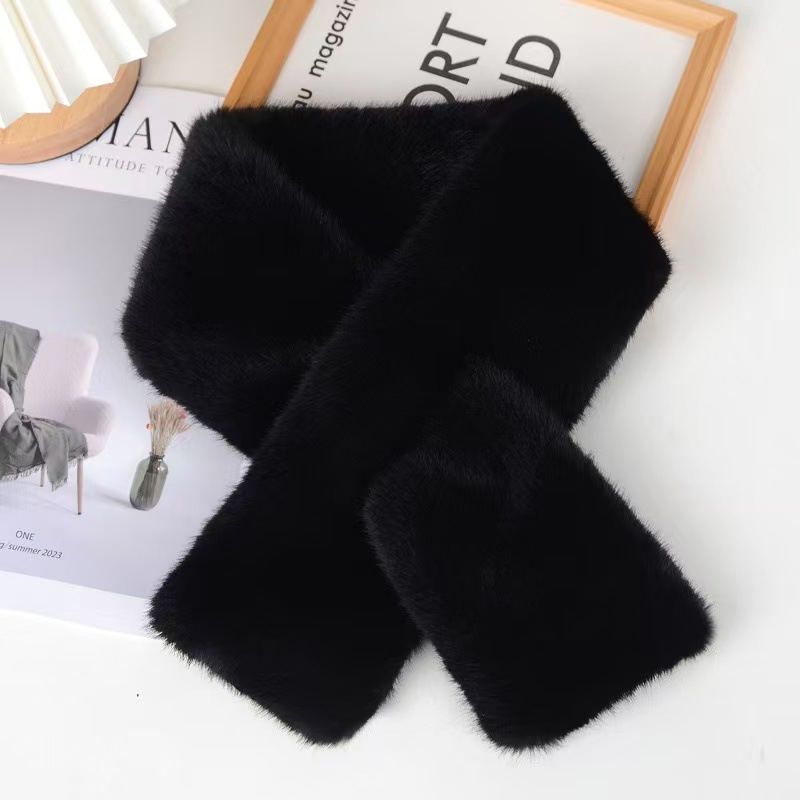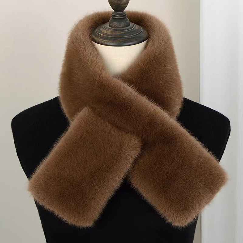 모조 밍크털 목도리, 심플한 단색 양면 크로스 디자인, 두꺼운 보온 겨울용 퍼 플러시 목도리, 다용도스토어 가기