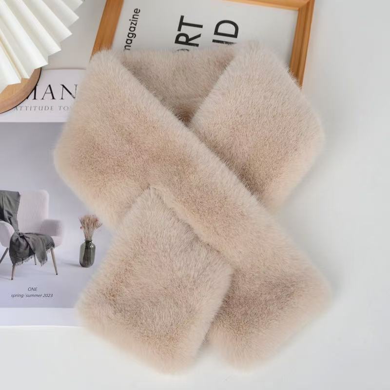 모조 밍크털 목도리, 심플한 단색 양면 크로스 디자인, 두꺼운 보온 겨울용 퍼 플러시 목도리, 다용도