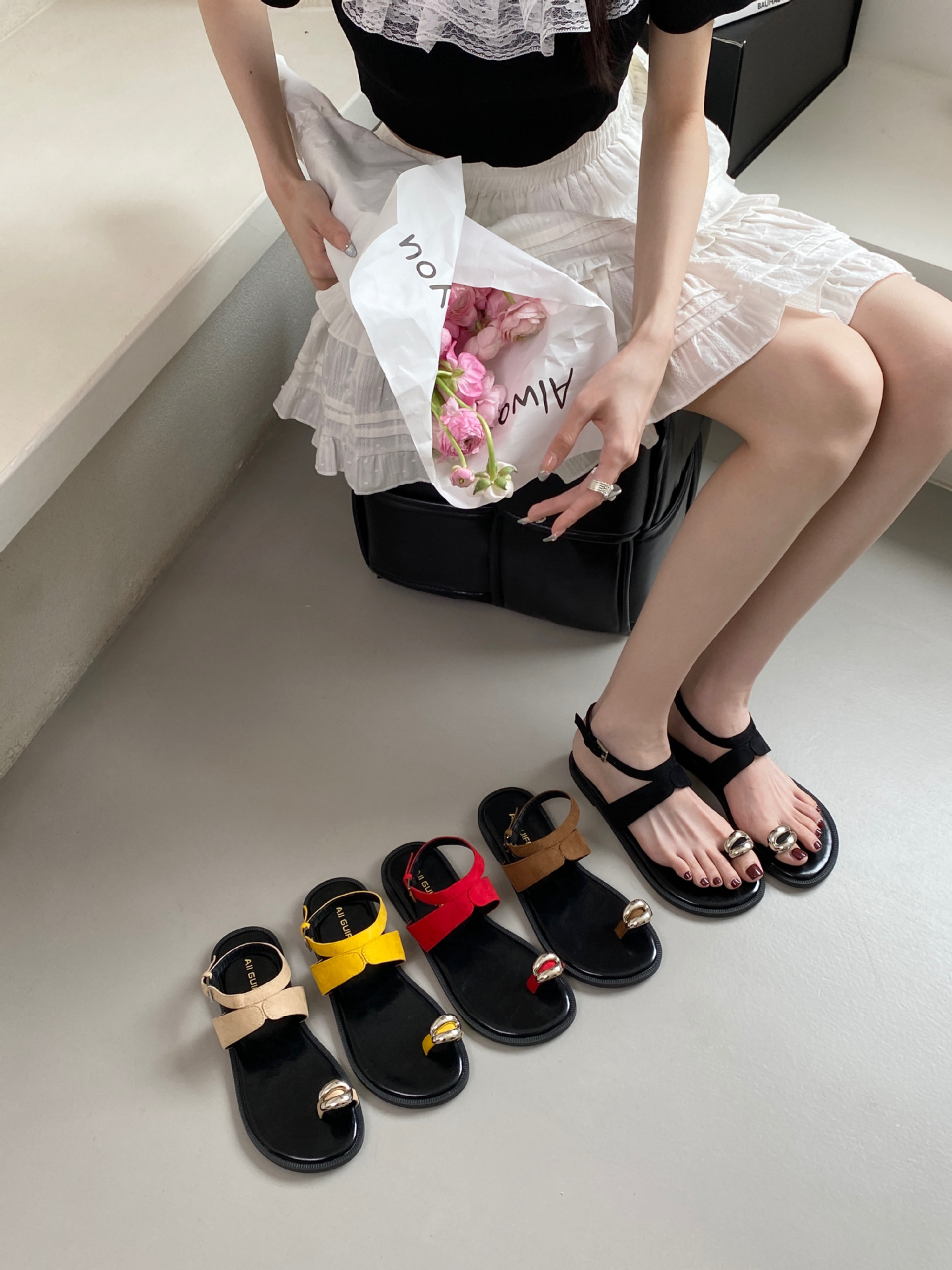 A852-12~플랫 프렌치 메탈 슬립온 샌들 여성화 2025 여름 신작 로마 슈즈