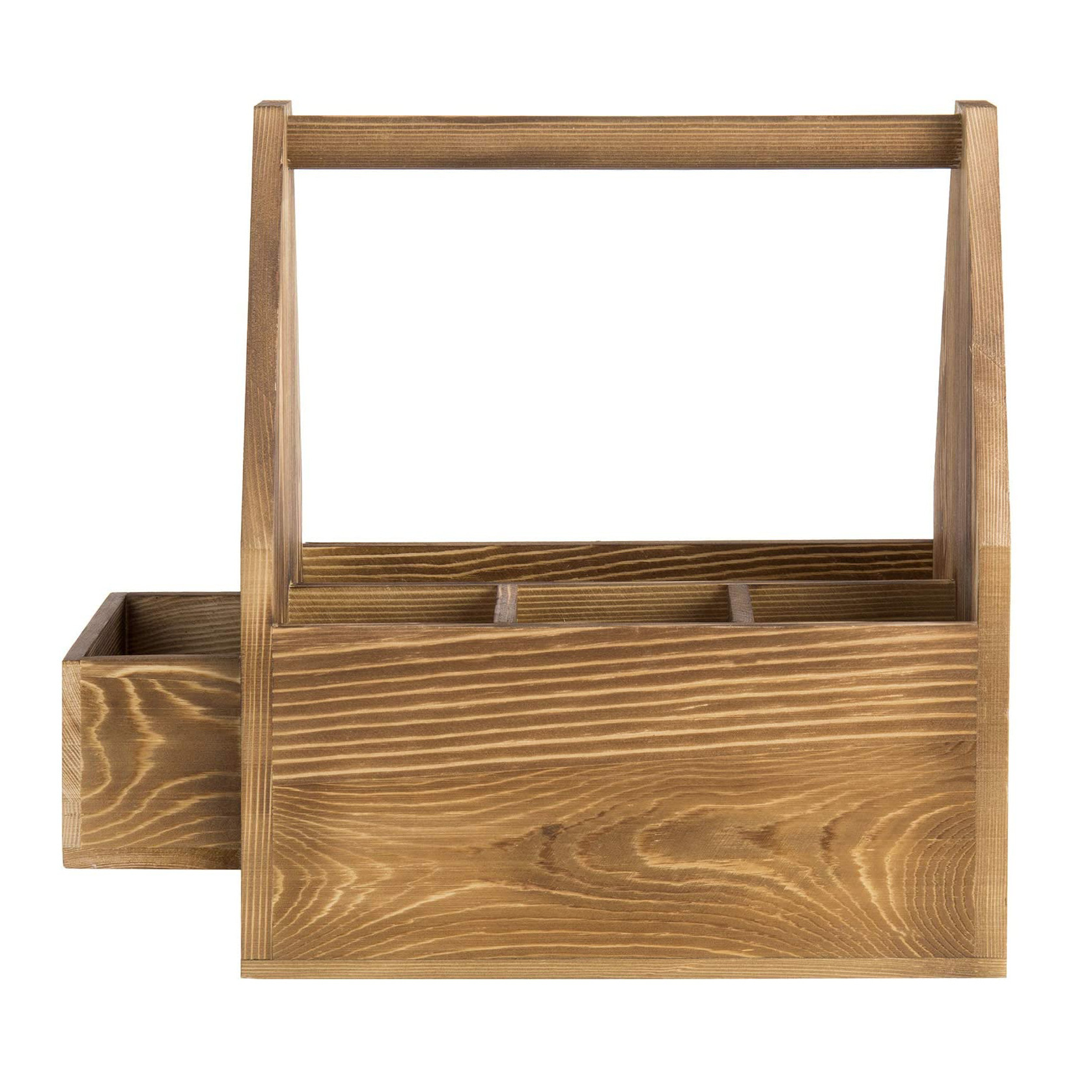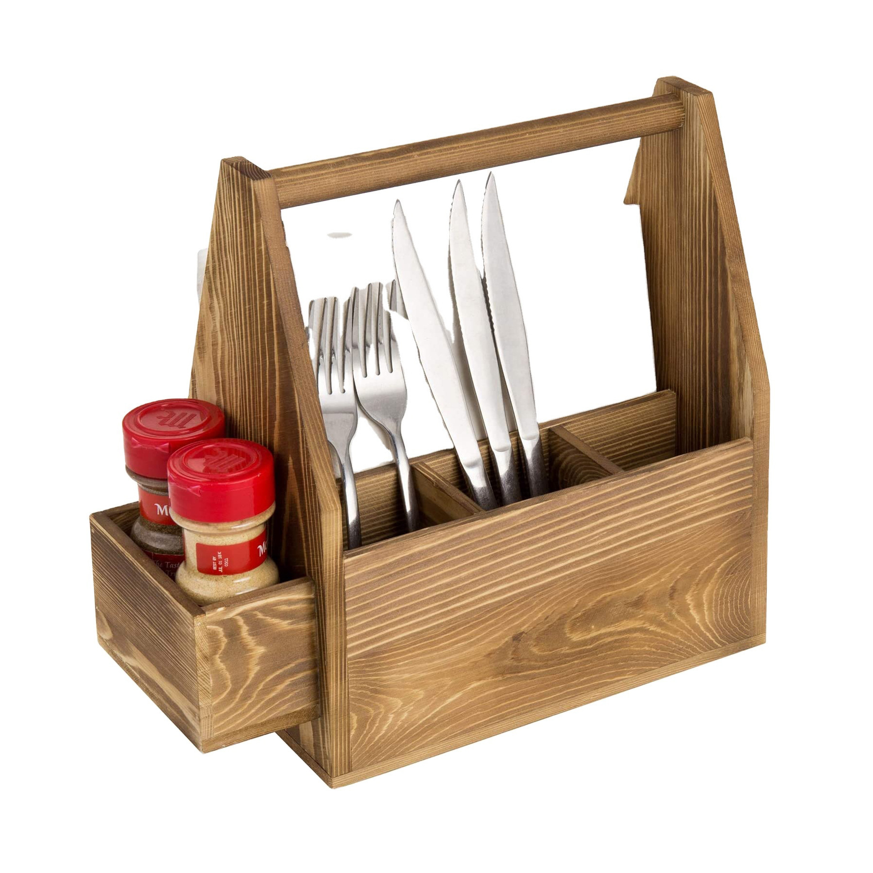 빈티지 컨트리의 번트 브라운 창의적인 목재 다기능 주방 3칸 식기 및 냅킨 보관함