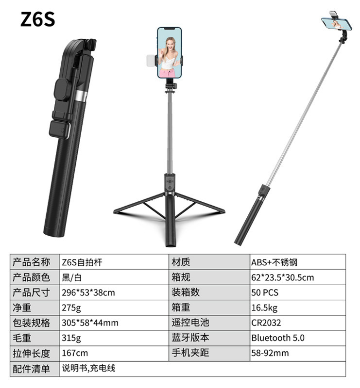 Z6 셀카봉 1.6m 확장 셀카봉 라이브 스트리밍 삼각대 Z6S 셀카 올인원 Douyin 라이브 스트리밍 리모콘