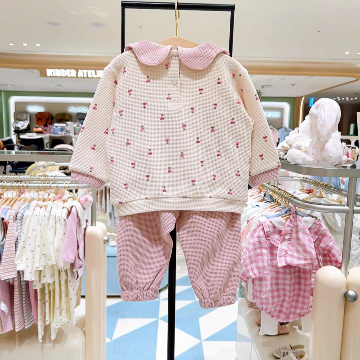신제품 mkmui 리틀 스타 한국 아동복 2025 가을 소녀 와플 꽃잎 칼라 꽃무늬 양복
