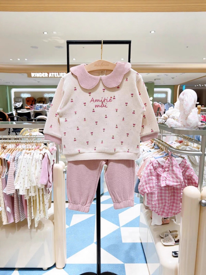 신제품 mkmui 리틀 스타 한국 아동복 2025 가을 소녀 와플 꽃잎 칼라 꽃무늬 양복스토어 가기