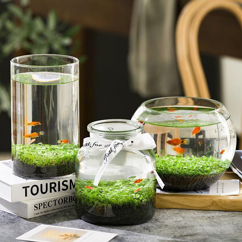 홈 DIY 창조적 인 생태 작은 물고기 탱크 유리 꽃병 투명 수경 식물 화분에 심은 수생 식물 사계절 마이크로 풍경스토어 가기