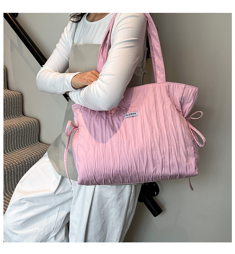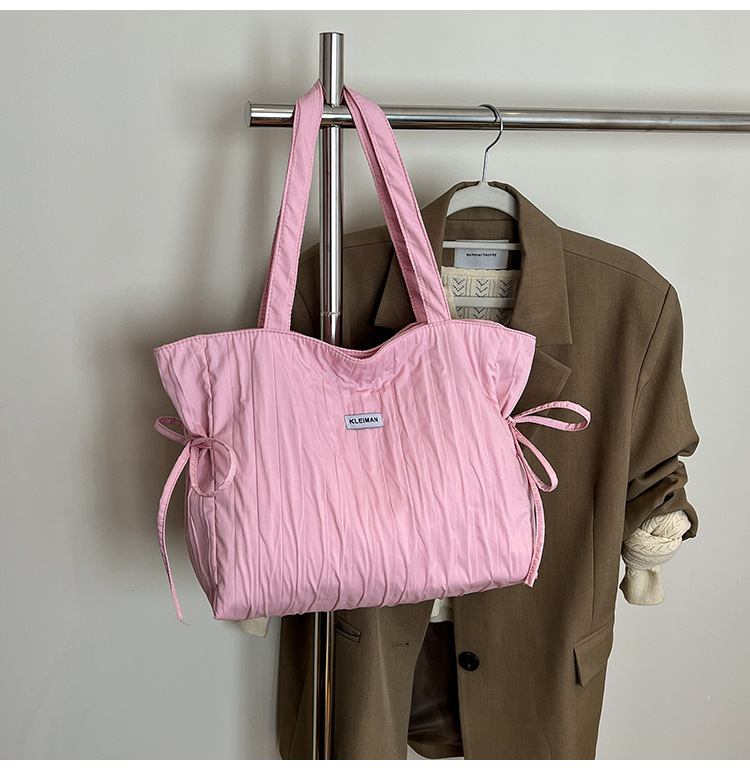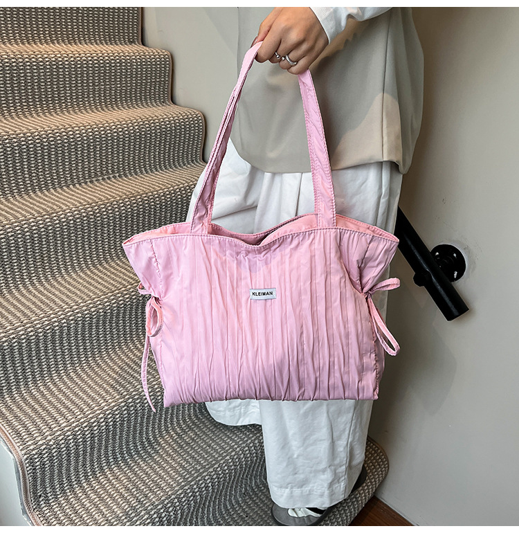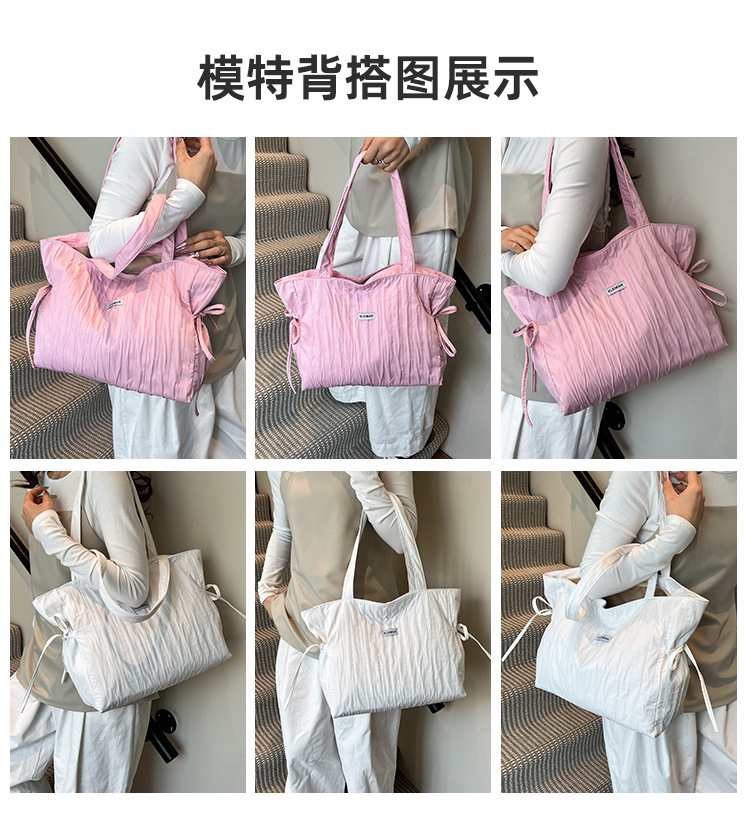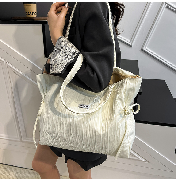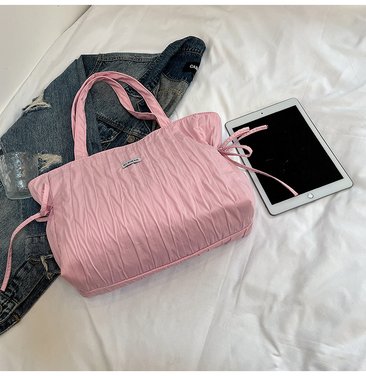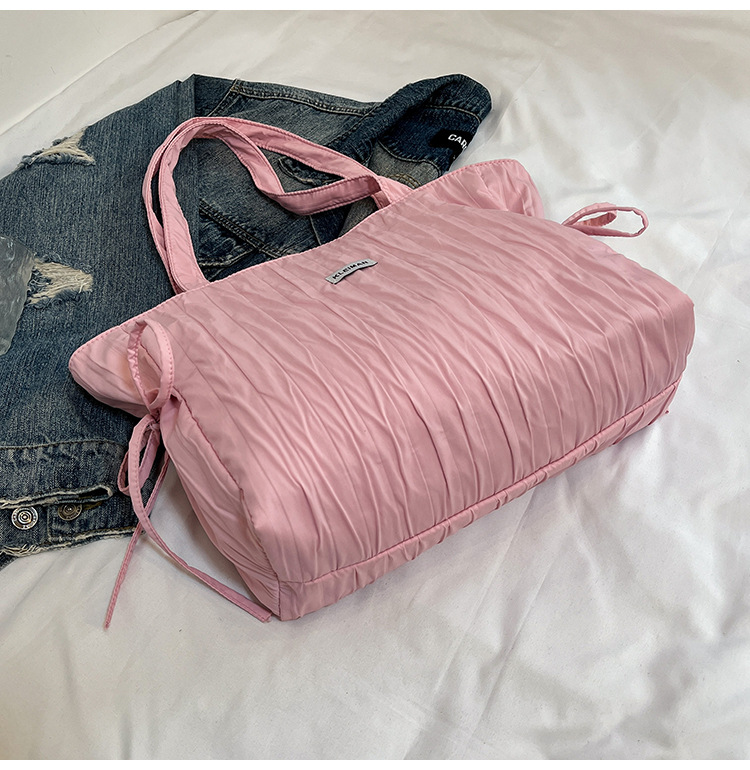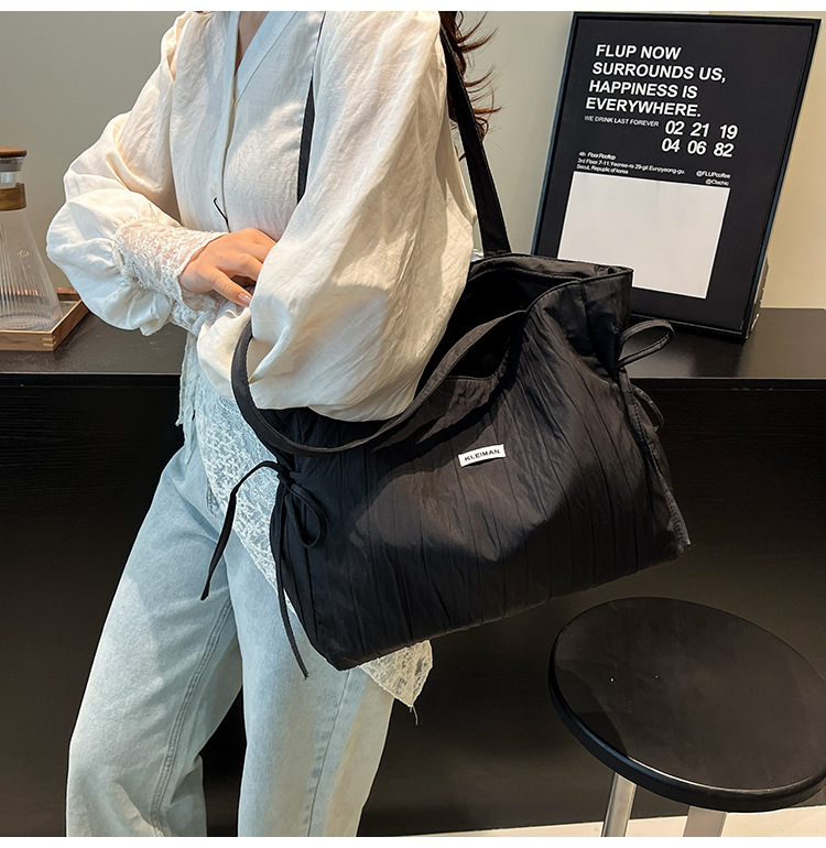 국경 간 나일론 가방 여성 가방 2025 새로운 스타일 간단한 패션 대용량 주름 어깨 가방 학생 토트 백