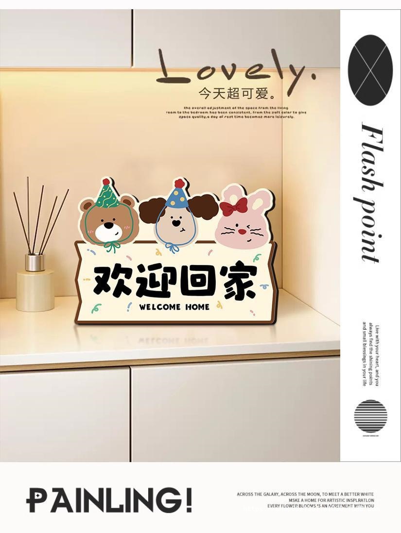 집에 오신 것을 환영합니다 입구 문 현관 장식품 장식 만화 귀여운 장식 그림 작은 장식품 탁상 장식품 장식 그림