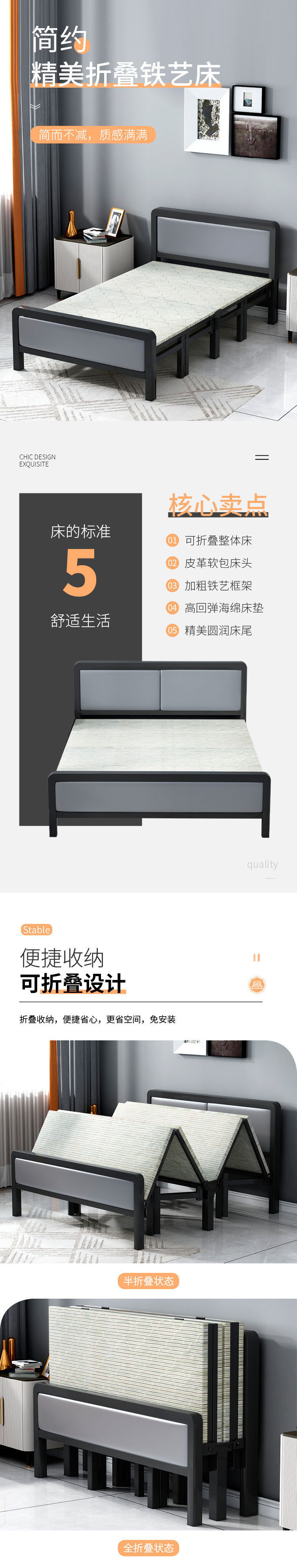 접이식 침대 싱글 더블 침대 기숙사 사무실 점심 시간 나무 침대 임대 집 철제 침대 가정용 단단한 철제 침대