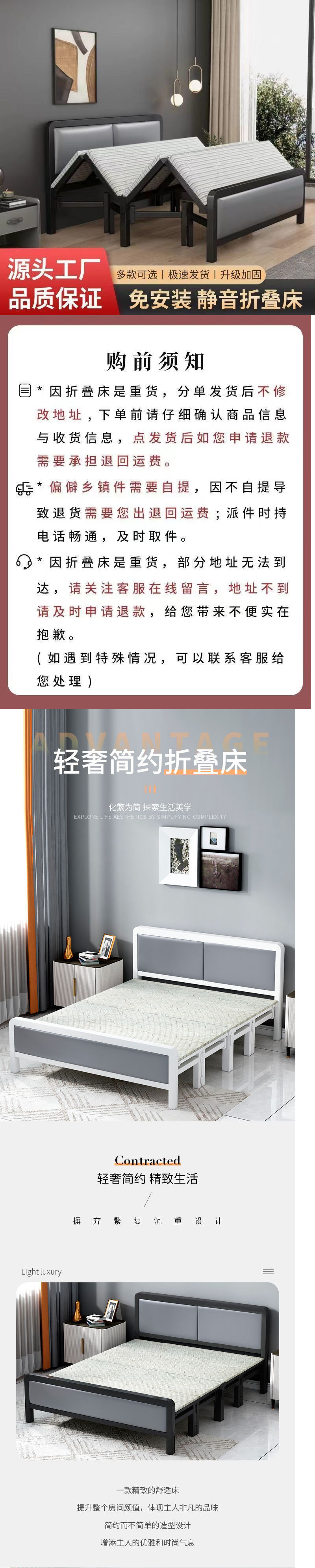 접이식 침대 싱글 더블 침대 기숙사 사무실 점심 시간 나무 침대 임대 집 철제 침대 가정용 단단한 철제 침대스토어 가기
