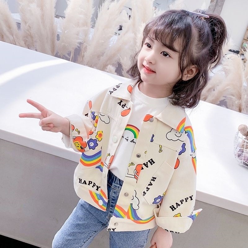 [신작] 여아 데님 재킷 2025 신작 아동 아우터 인터넷 연예인 가을 탑 어린 소녀 재킷스토어 가기