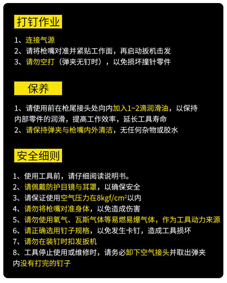 • Fang Dawang ST64 강철 네일 건 + 조인트 건 바늘 액세서리 키트