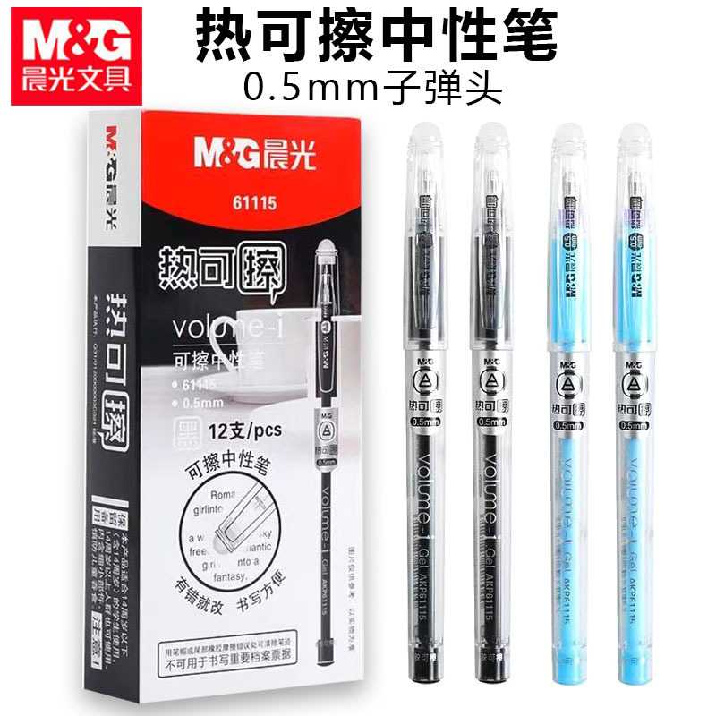 모닝라이트 AKP61115 열 지워지는 펜 학생용 모이이 지워지는 크리스탈 블루 펜 0.5mm 총알형 블랙 지워지는 젤 펜