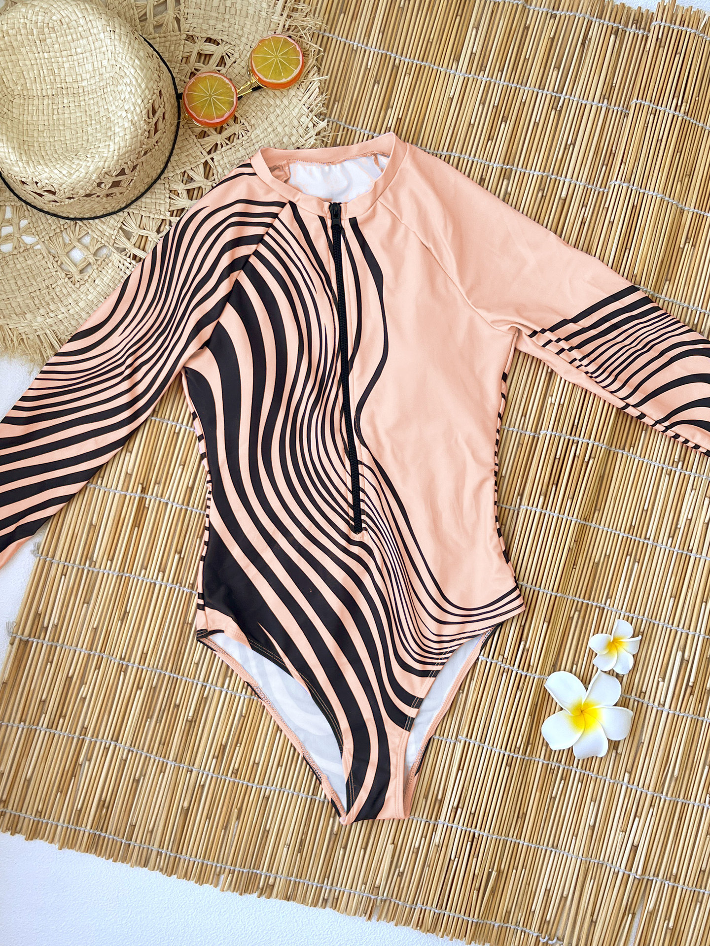 지퍼형 긴팔 원피스 서핑 수트 여성용 2026 신상 스트라이프 프린트 수영복스토어 가기