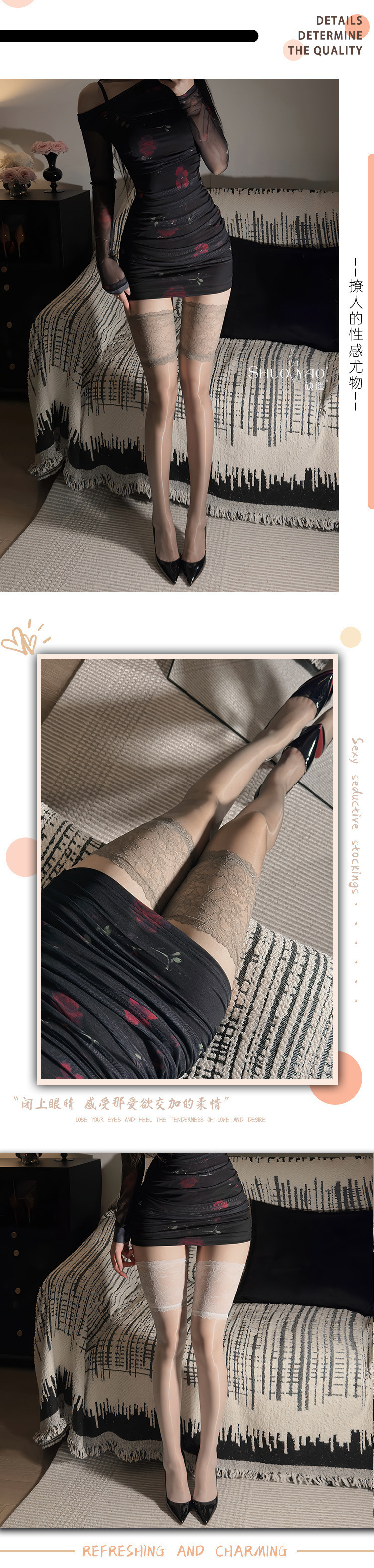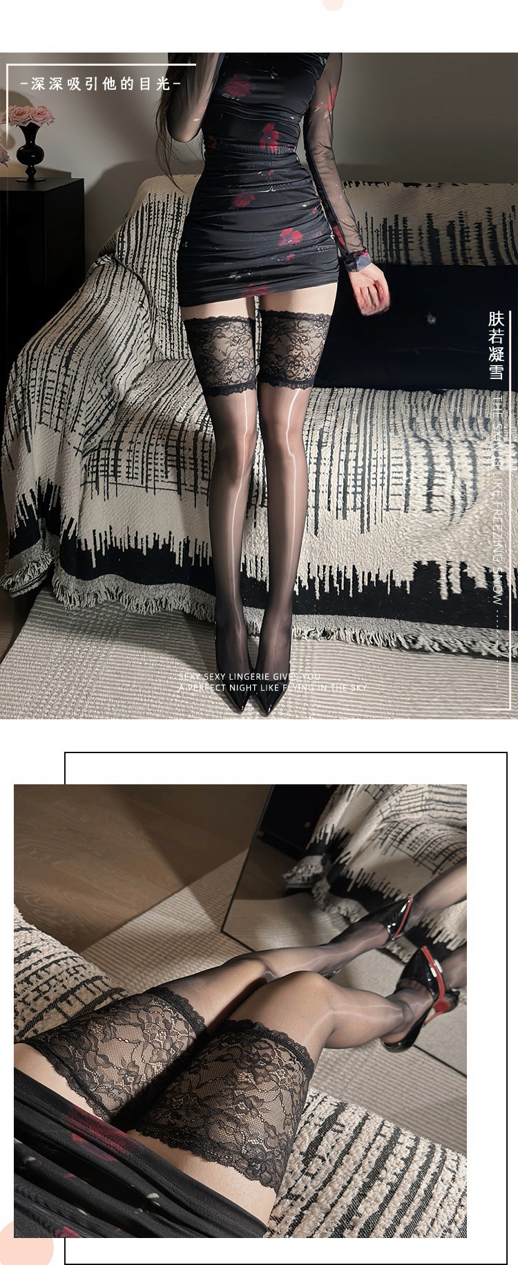 섹시한 스타킹, 오로라 챙이 넓은 레이스 오일 스타킹, 순수한 욕망 허벅지 스타킹, 섹시한 초박형 검은색 스타킹, 무릎 위 스타킹스토어 가기