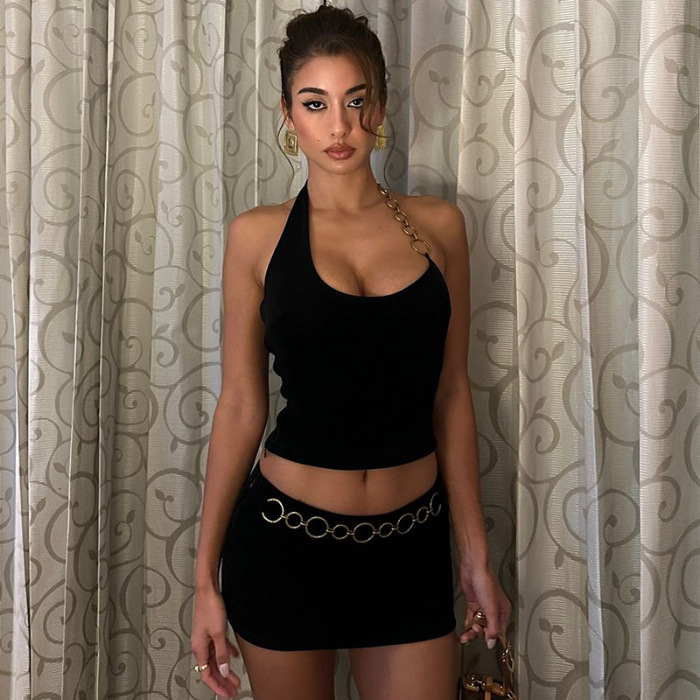 2025 봄 신작 여성 메탈 링 비대칭 캐미솔 백리스 슬리밍 힙 스커트 트렌디스토어 가기