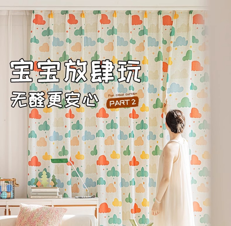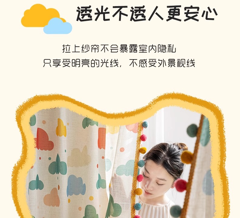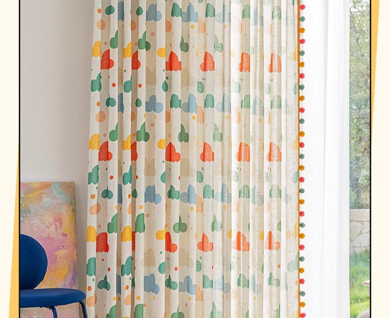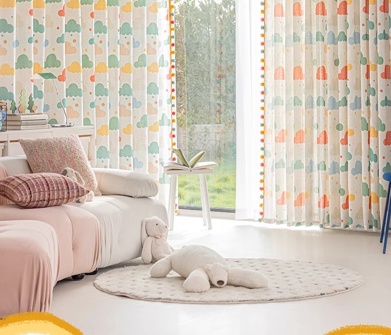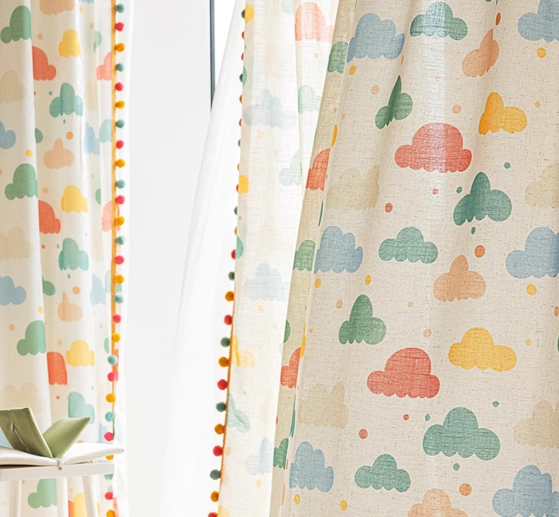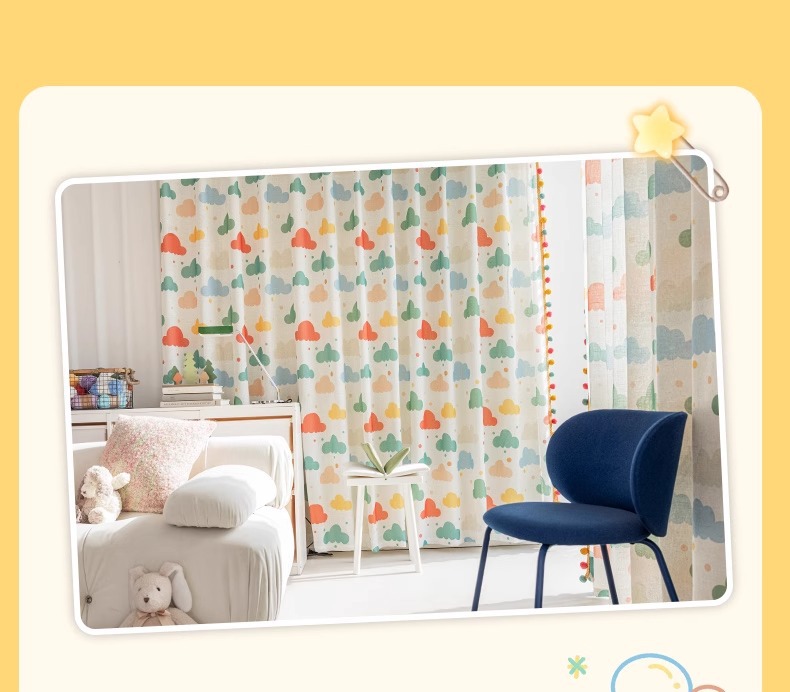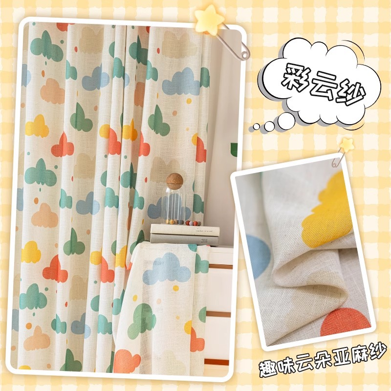 Caiyunsha 어린이 방 커튼 빛 투과율이없는 거즈 커튼 만화 소녀 소년 침실 베드 창 리넨 창 스크린스토어 가기