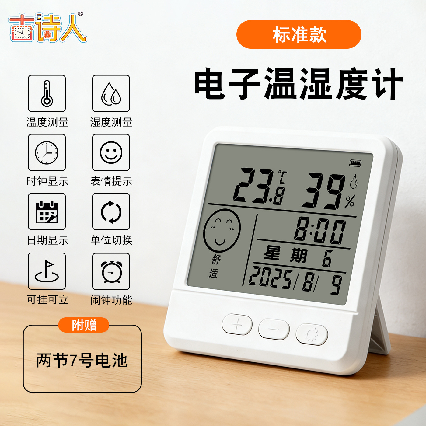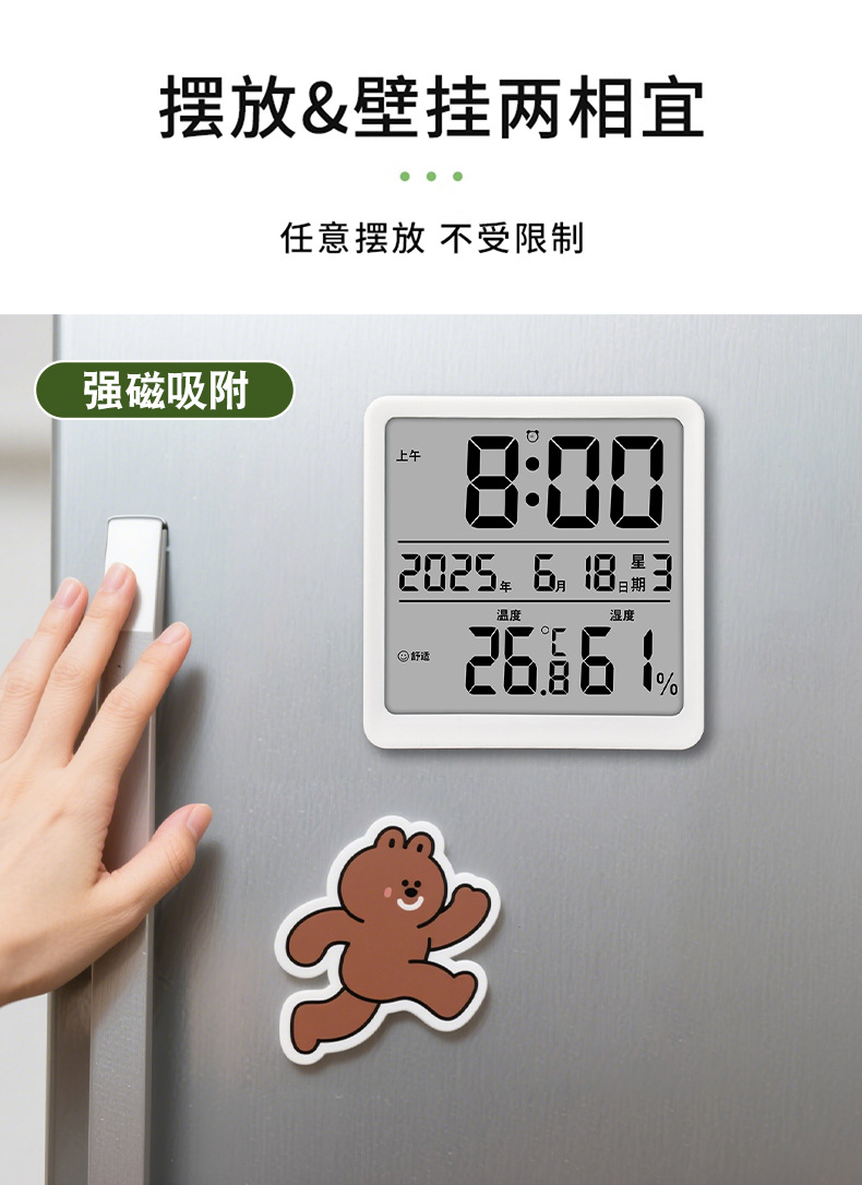 시간을 갖춘 고정밀 온도 및 습도 측정기 실내 가정용 내장 자기 다기능 대형 스크린 디스플레이 온도 및 습도 측정기