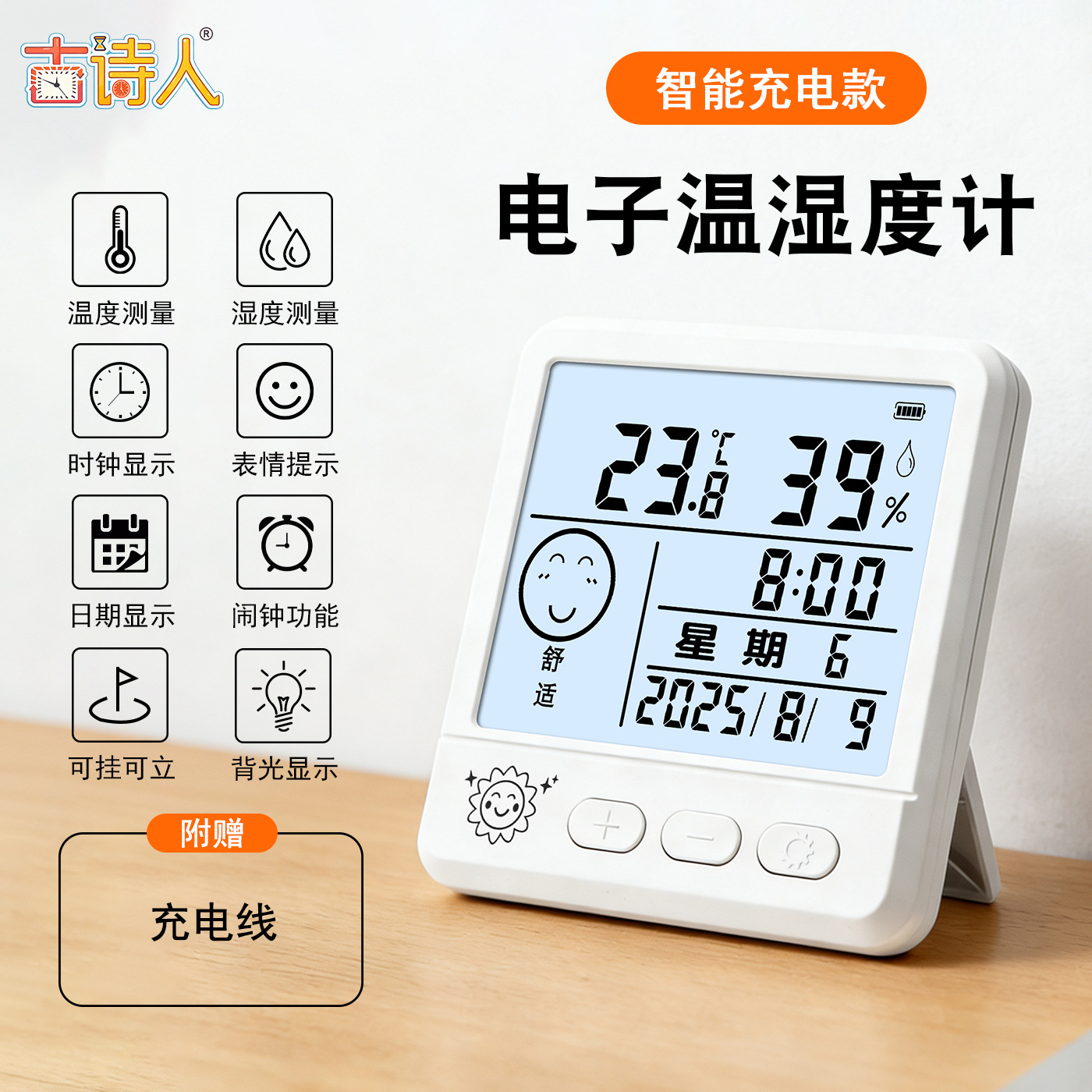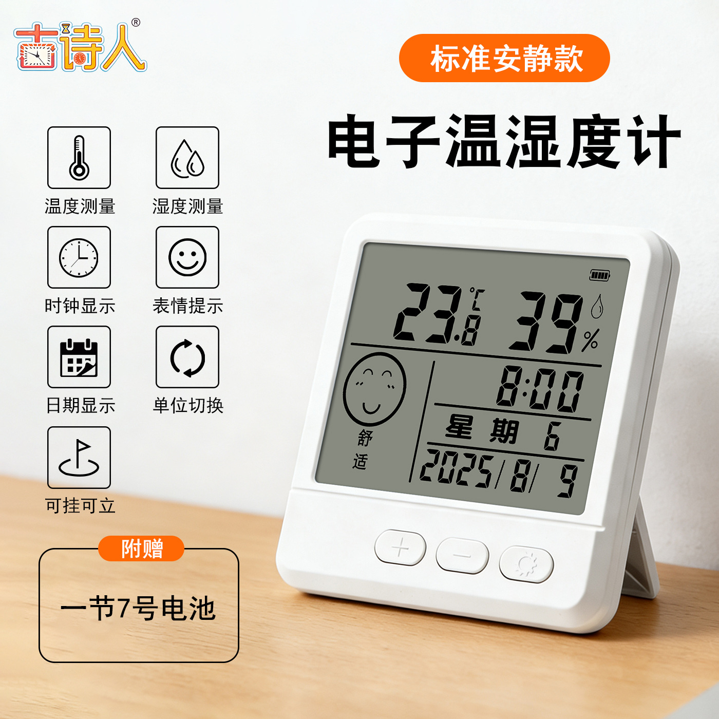 시간을 갖춘 고정밀 온도 및 습도 측정기 실내 가정용 내장 자기 다기능 대형 스크린 디스플레이 온도 및 습도 측정기스토어 가기