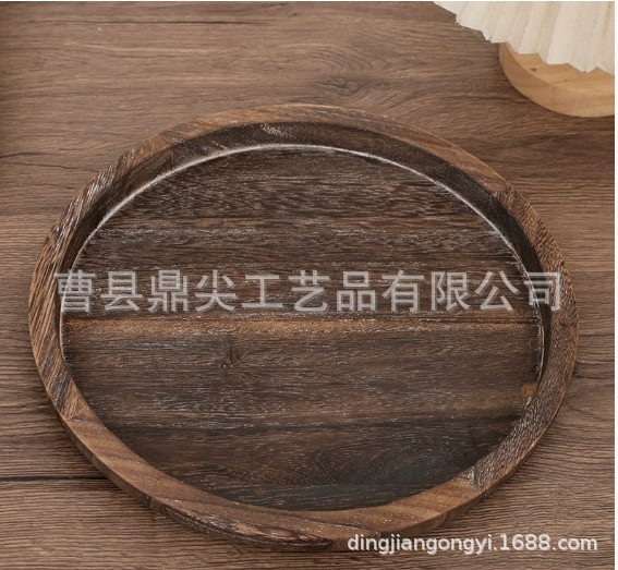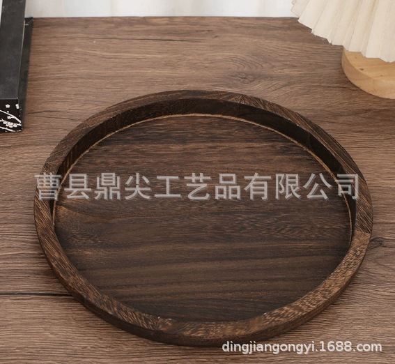 재고 있음 복고풍 단단한 나무 트레이 라운드 홈 장식 장식품 홈 나무 트레이 라운드 거실 단단한 나무 찻잔 트레이스토어 가기