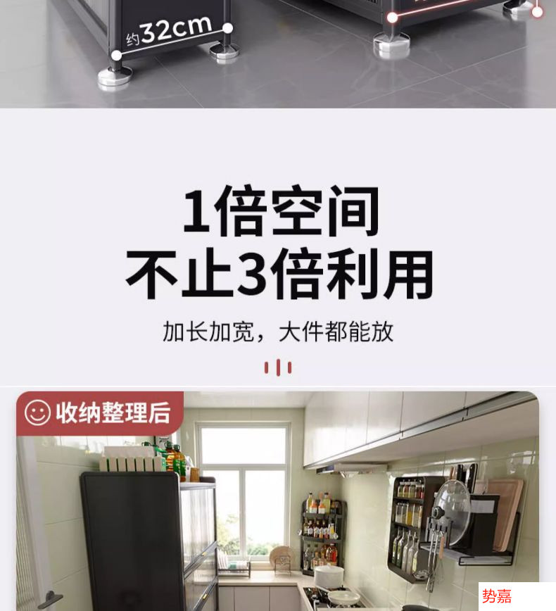 Four Seasons Muge 주방 수납 선반 바닥 먼지 방지 다층 수납 캐비닛 다기능 수납 캐비닛 캐비닛 수납 선반스토어 가기