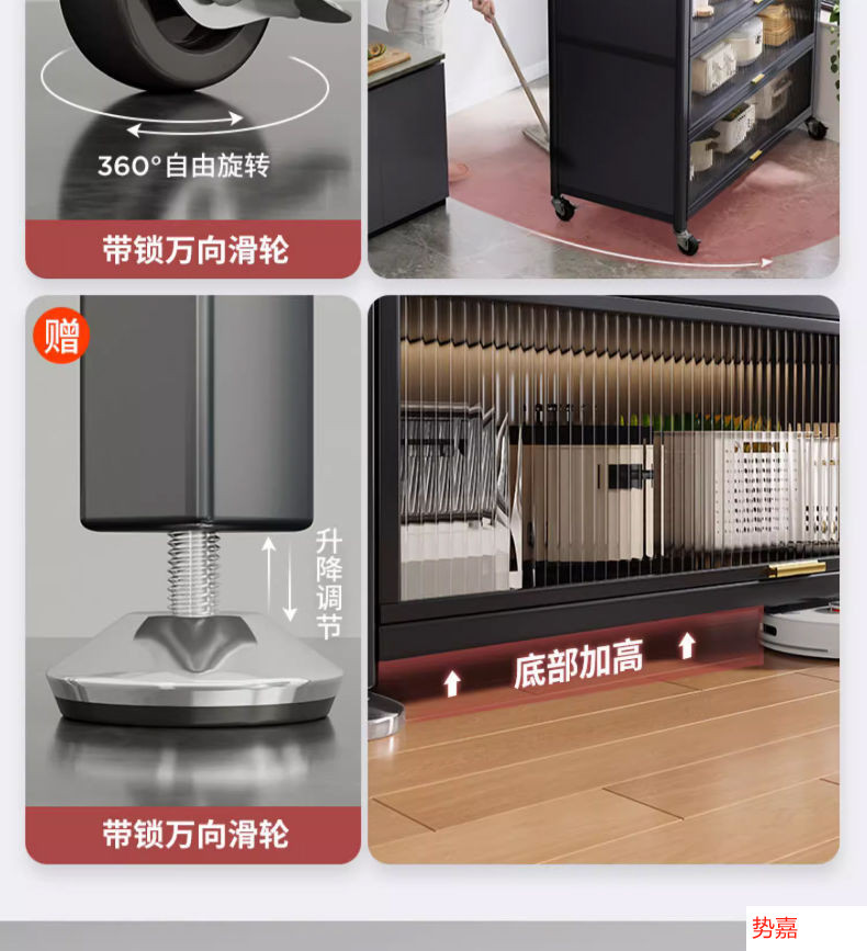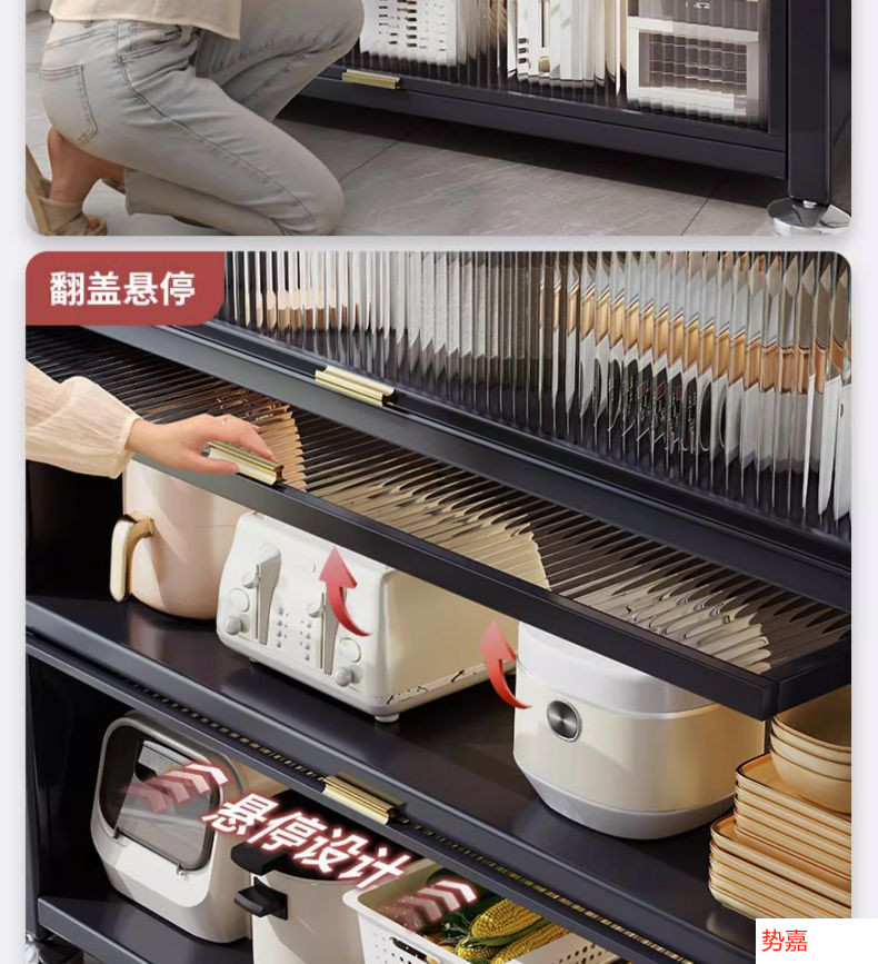 Four Seasons Muge 주방 수납 선반 바닥 먼지 방지 다층 수납 캐비닛 다기능 수납 캐비닛 캐비닛 수납 선반