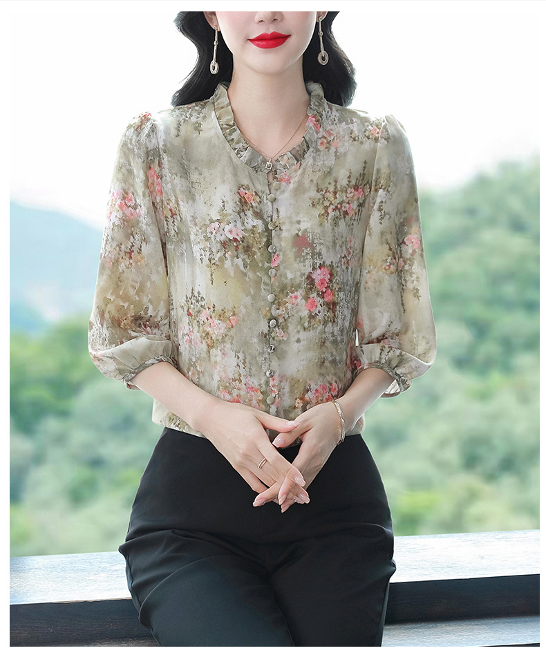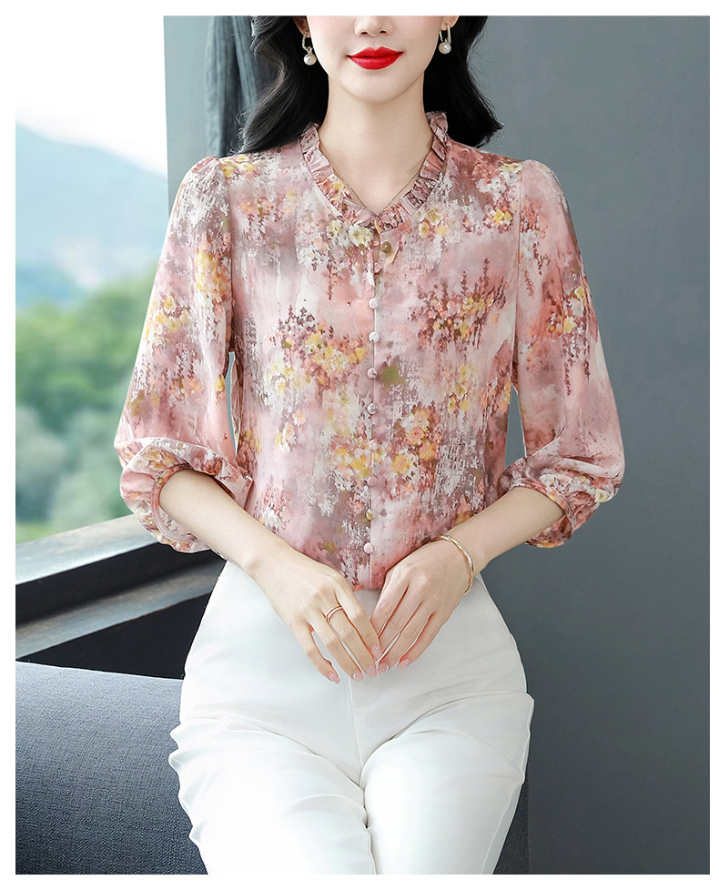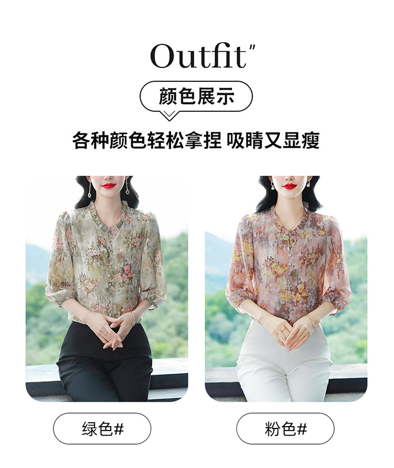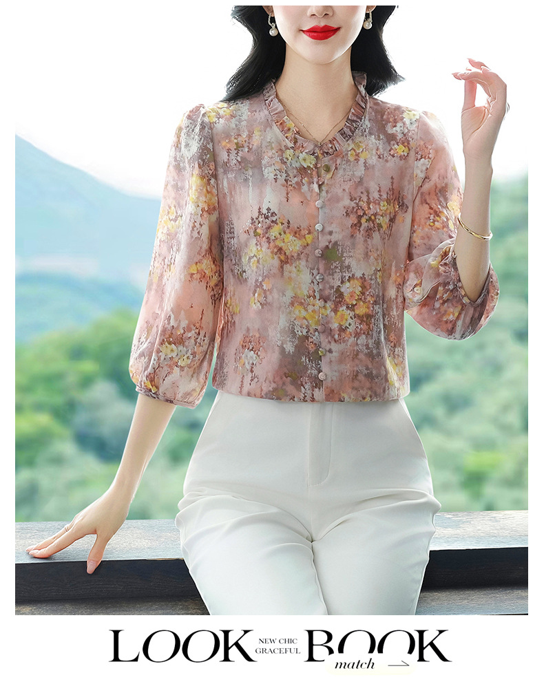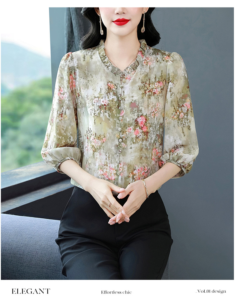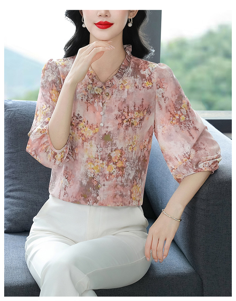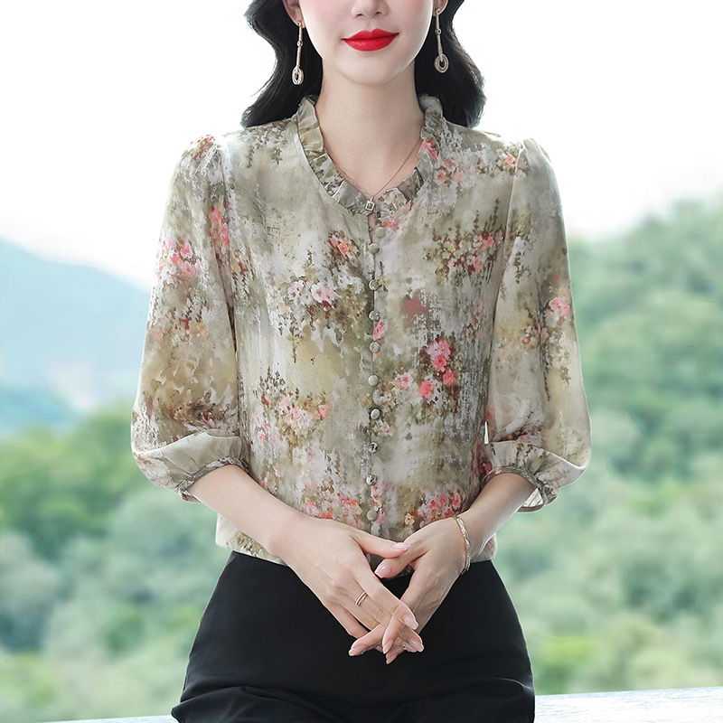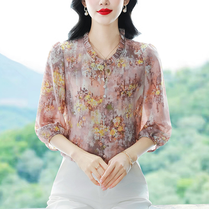 스팟 쉬폰 셔츠, 새로운 스타일, 복고풍 홍콩 스타일, 여성용 멀버리 실크 탑, 다용도 셔츠, 루즈하고 배를 덮습니다.스토어 가기